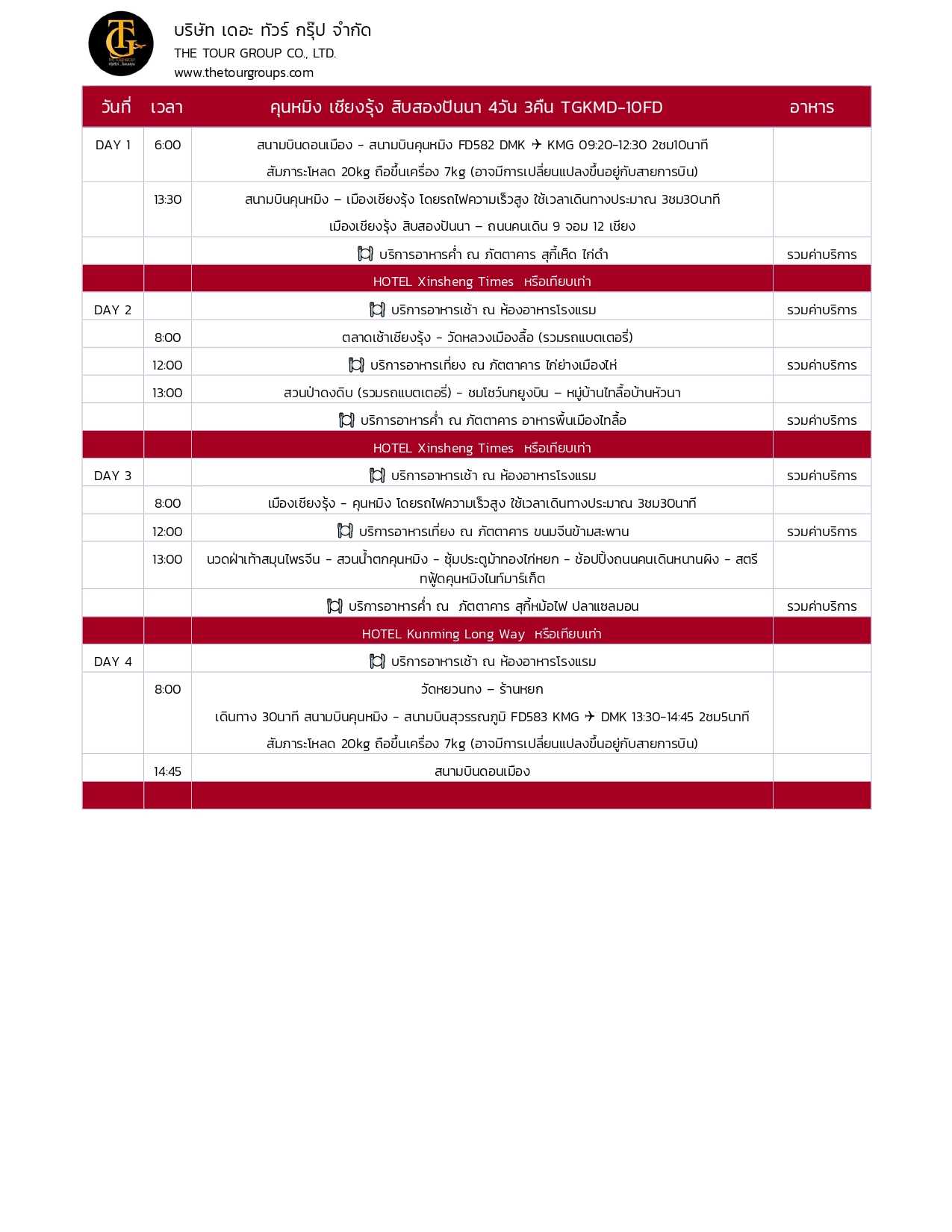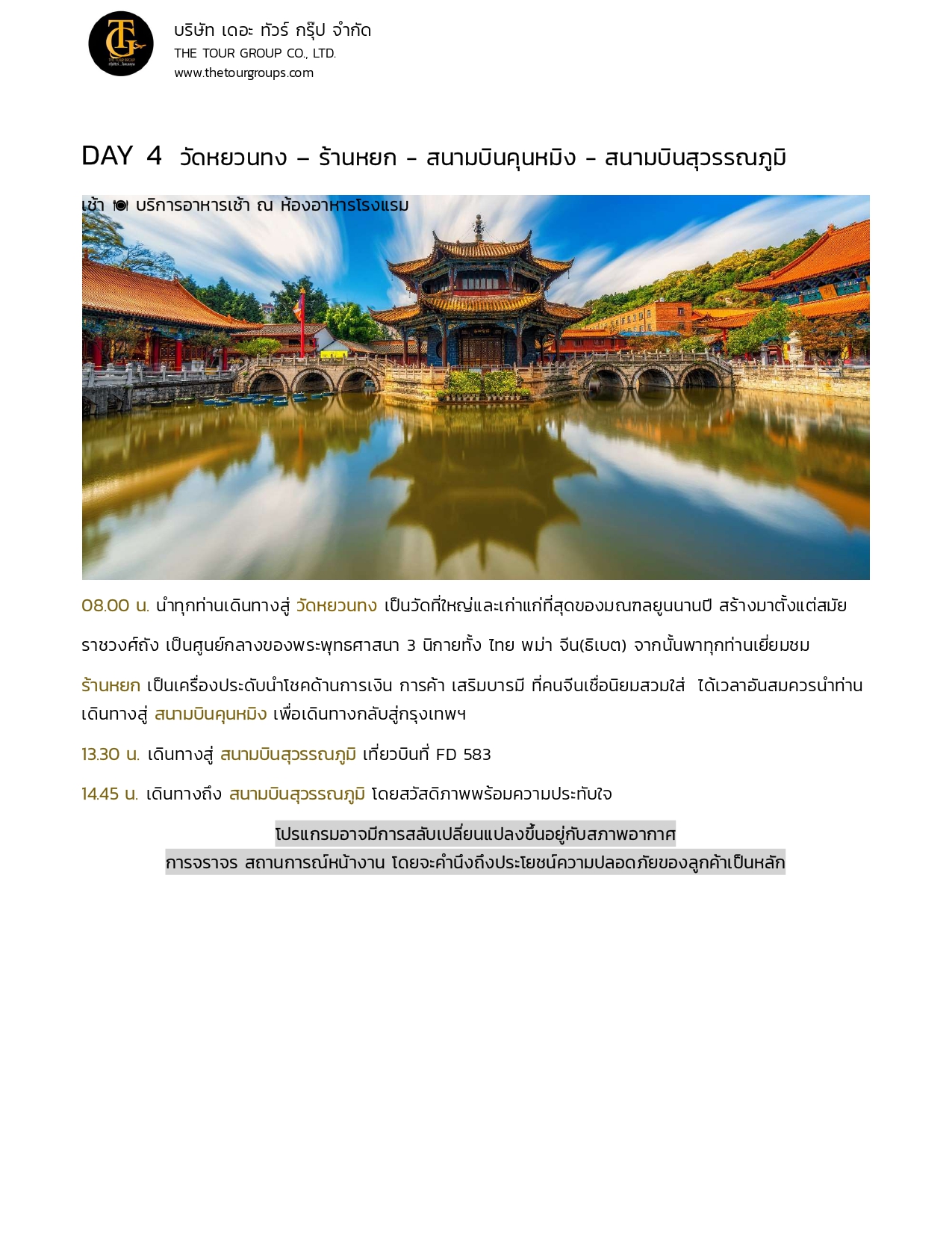 คุนหมิง เชียงรุ้ง สิบสองปันนา 4วัน 3คืน