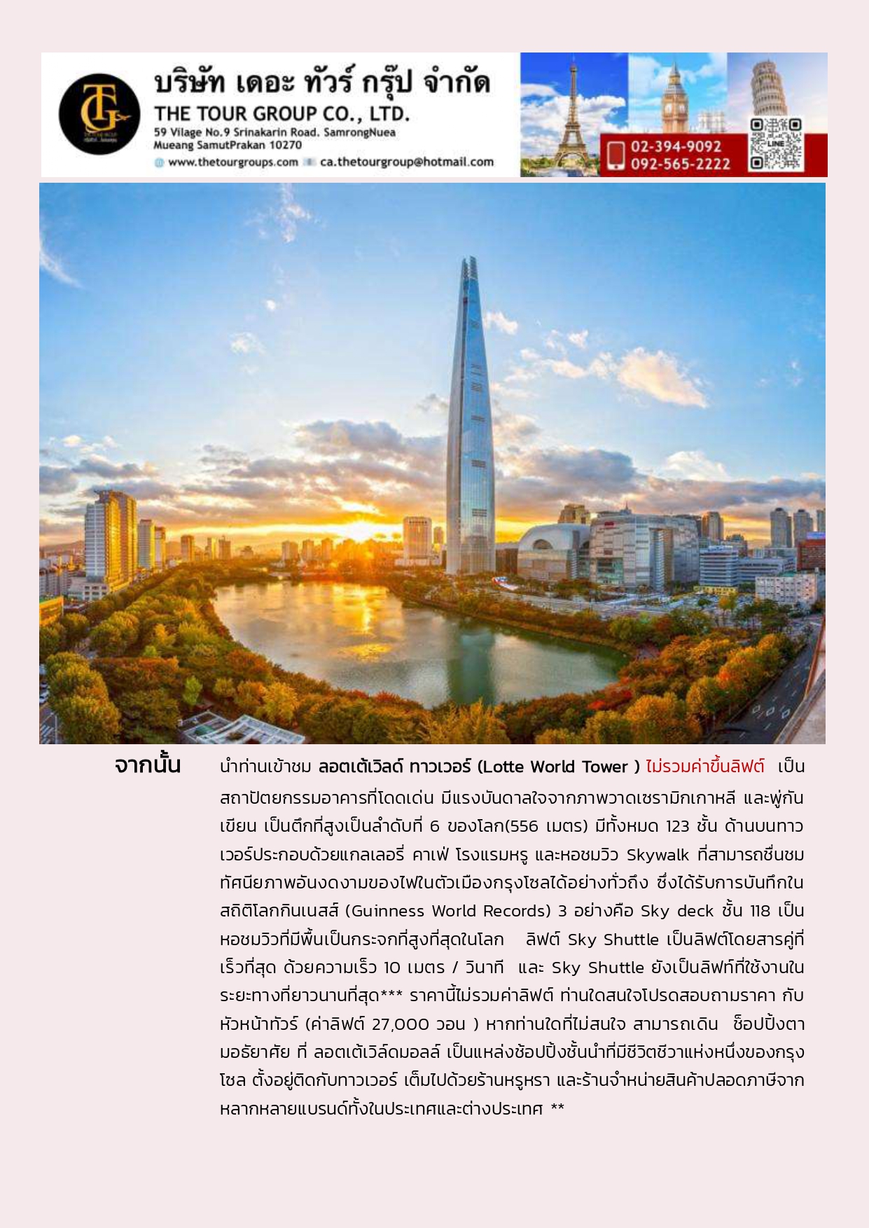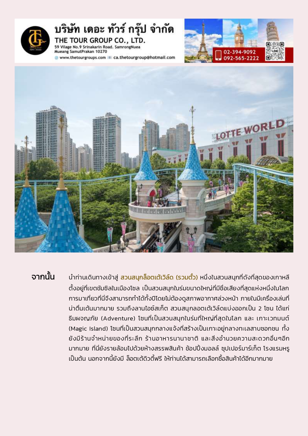 เกาหลี ฟินเวอร์ สวนสนุกลอตเต้เวิร์ล 5วัน 3คืน