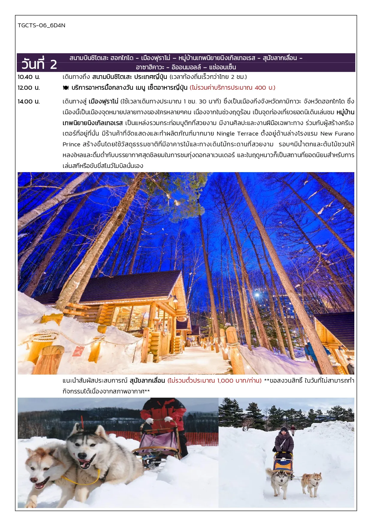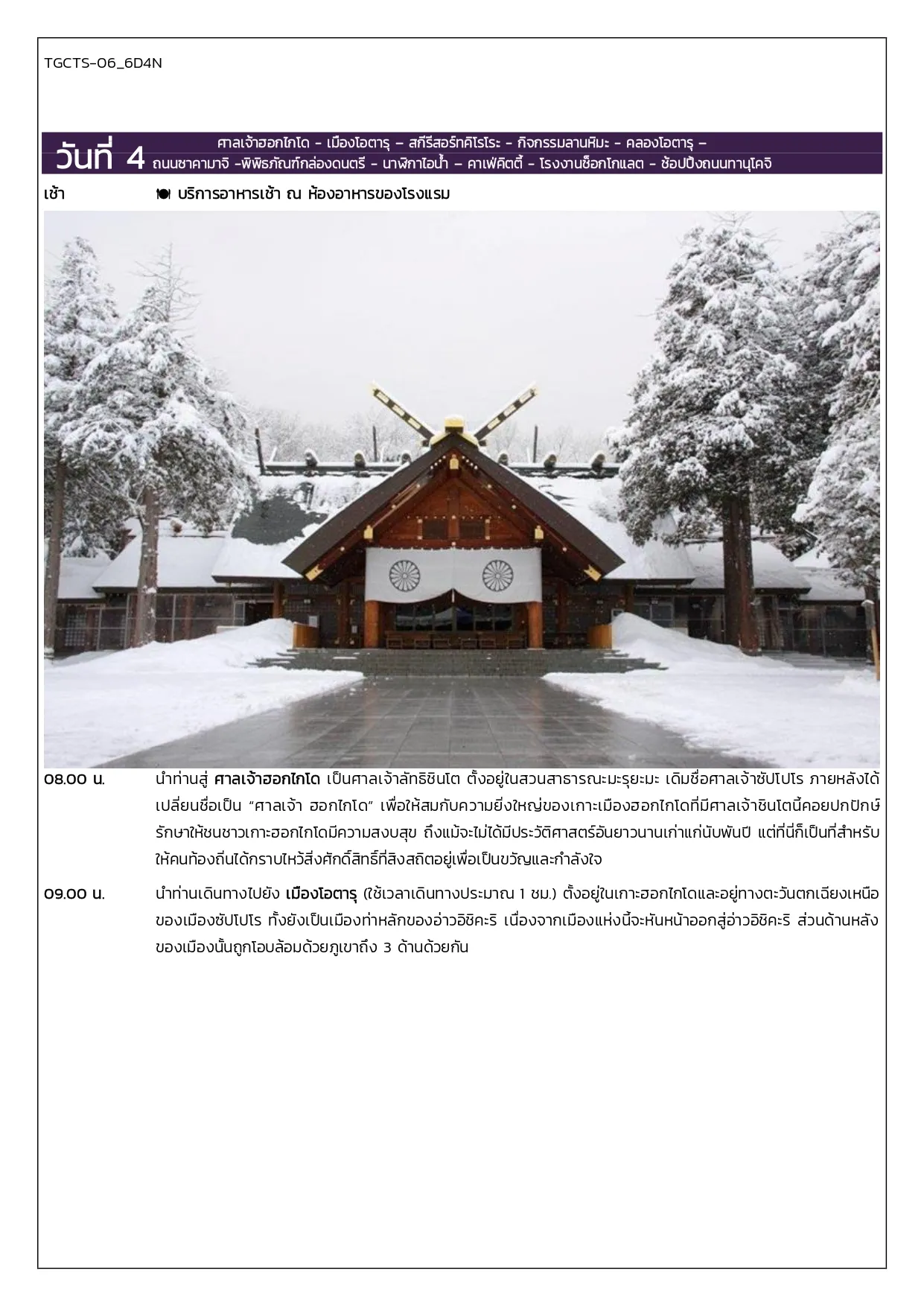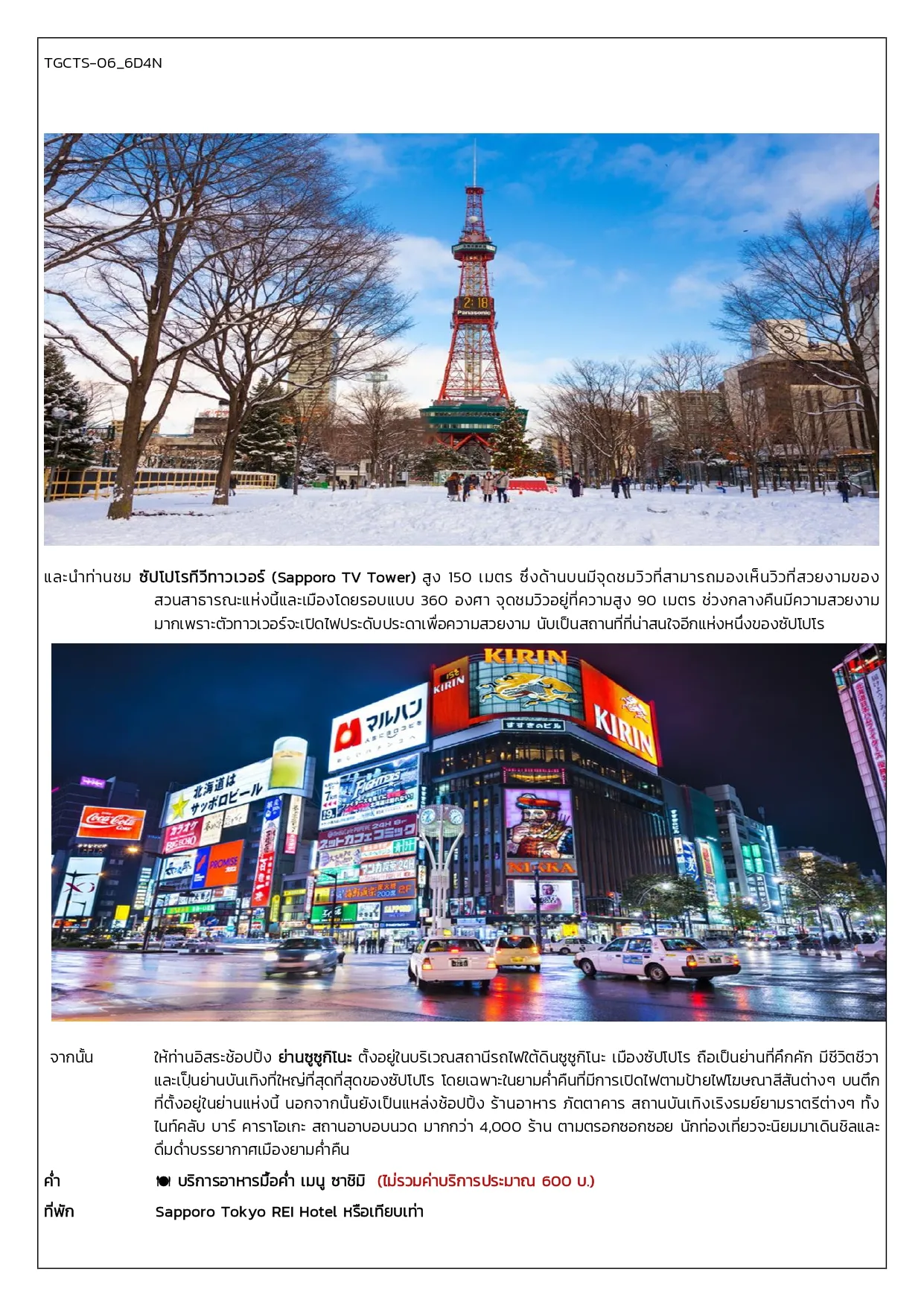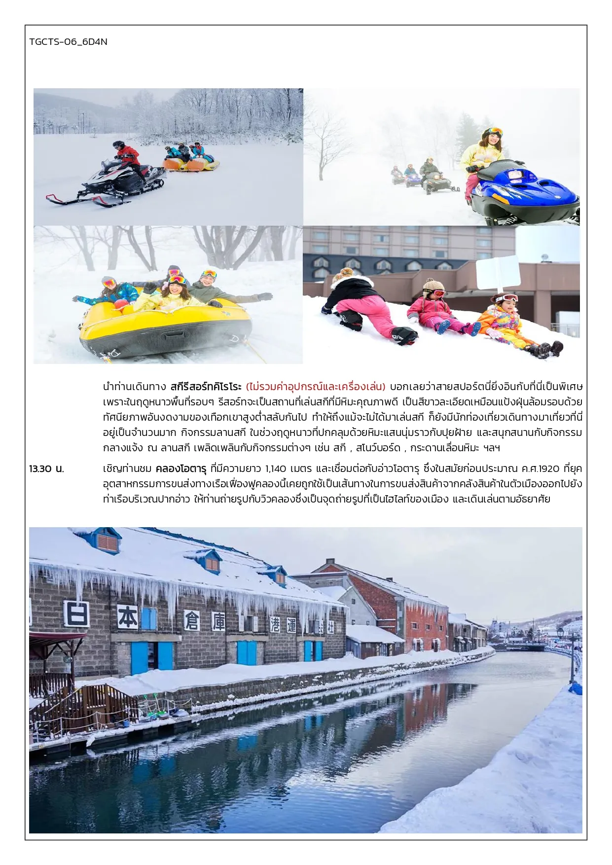 TGCTS-06 ฮอกไกโด ซัปโปโร อาซาฮิคาวะ ฟุราโนะ โอตารุ – 6D4N เดินทาง DEC-MAR