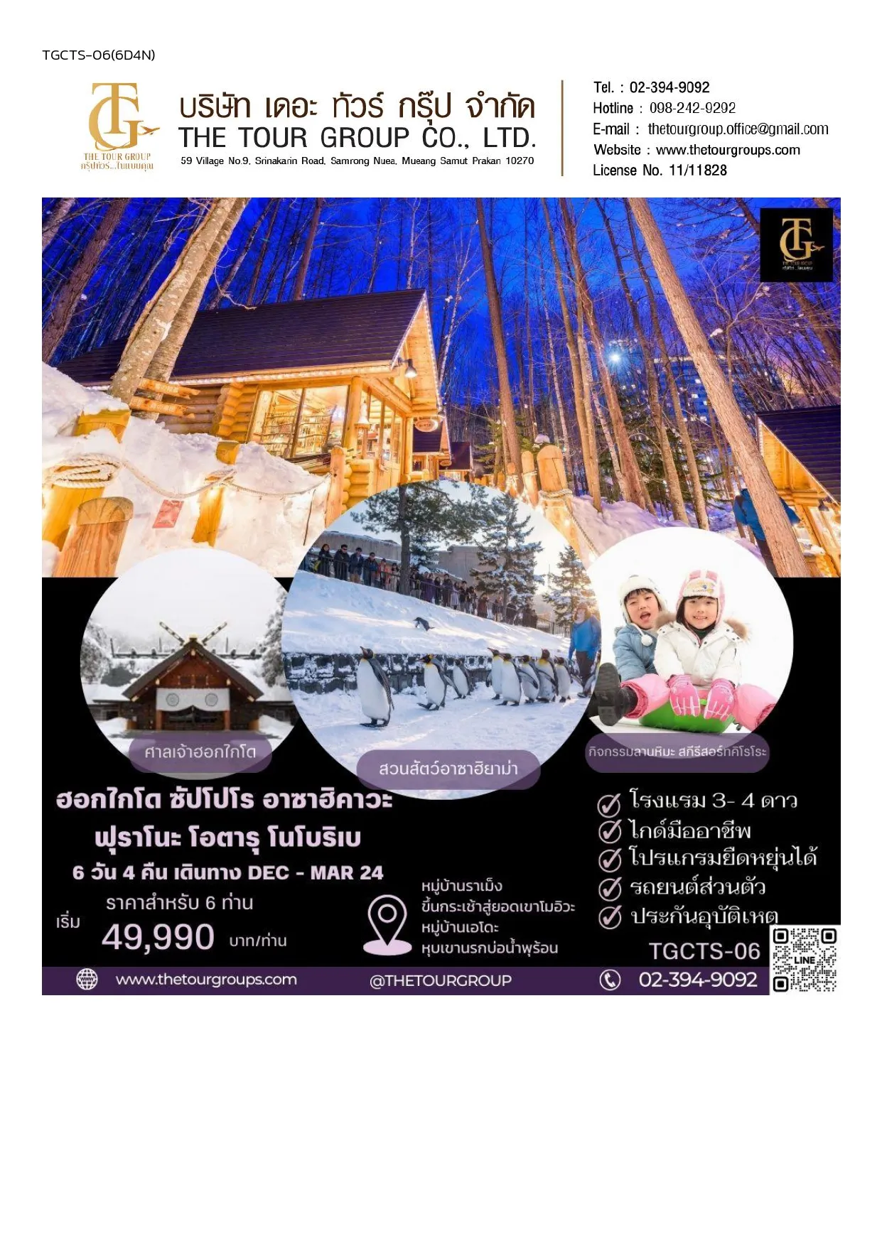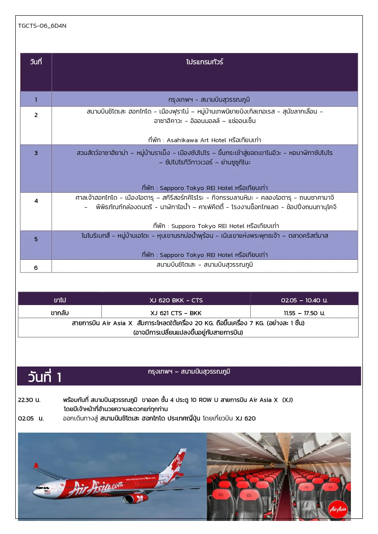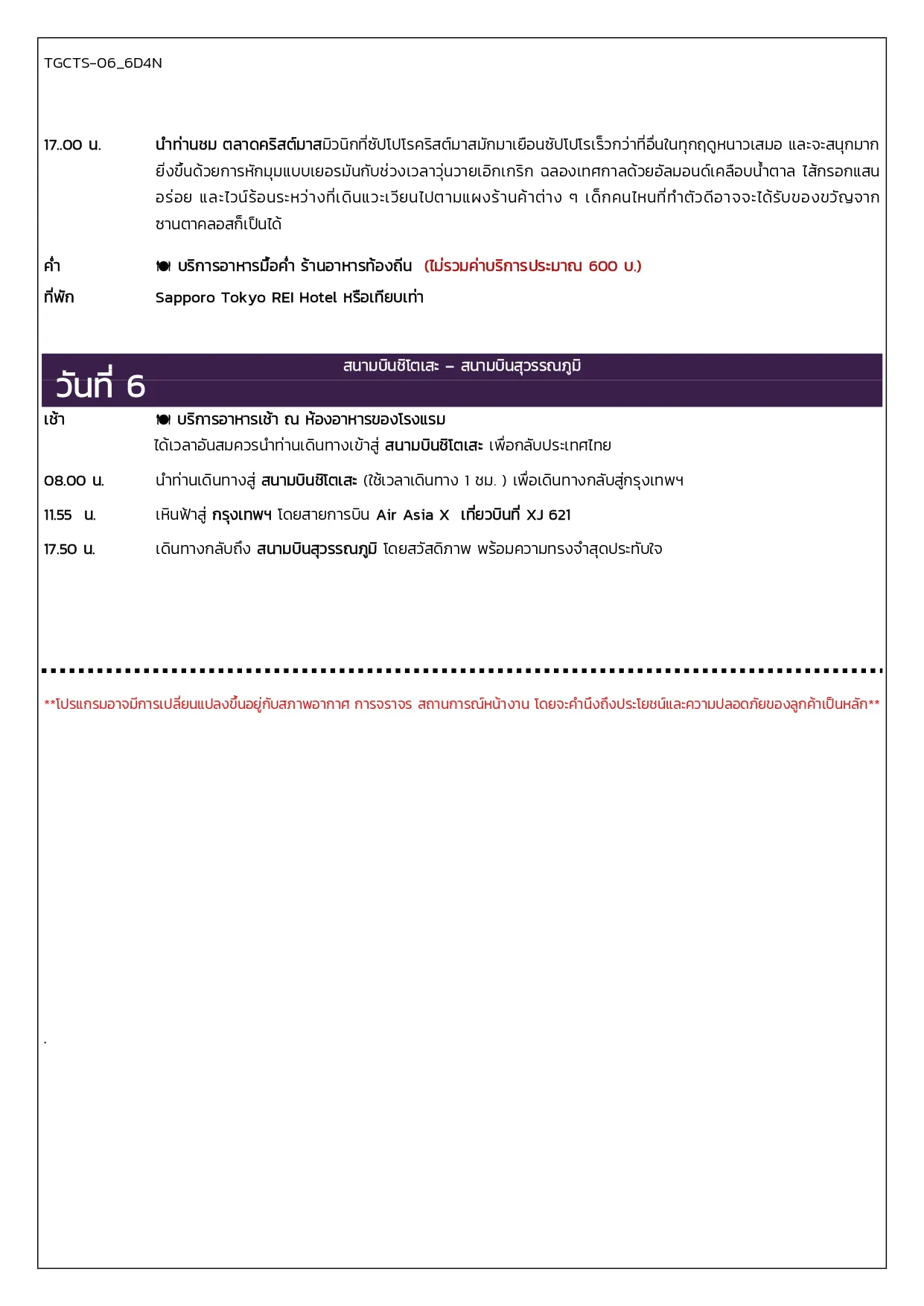 TGCTS-06 ฮอกไกโด ซัปโปโร อาซาฮิคาวะ ฟุราโนะ โอตารุ – 6D4N เดินทาง DEC-MAR