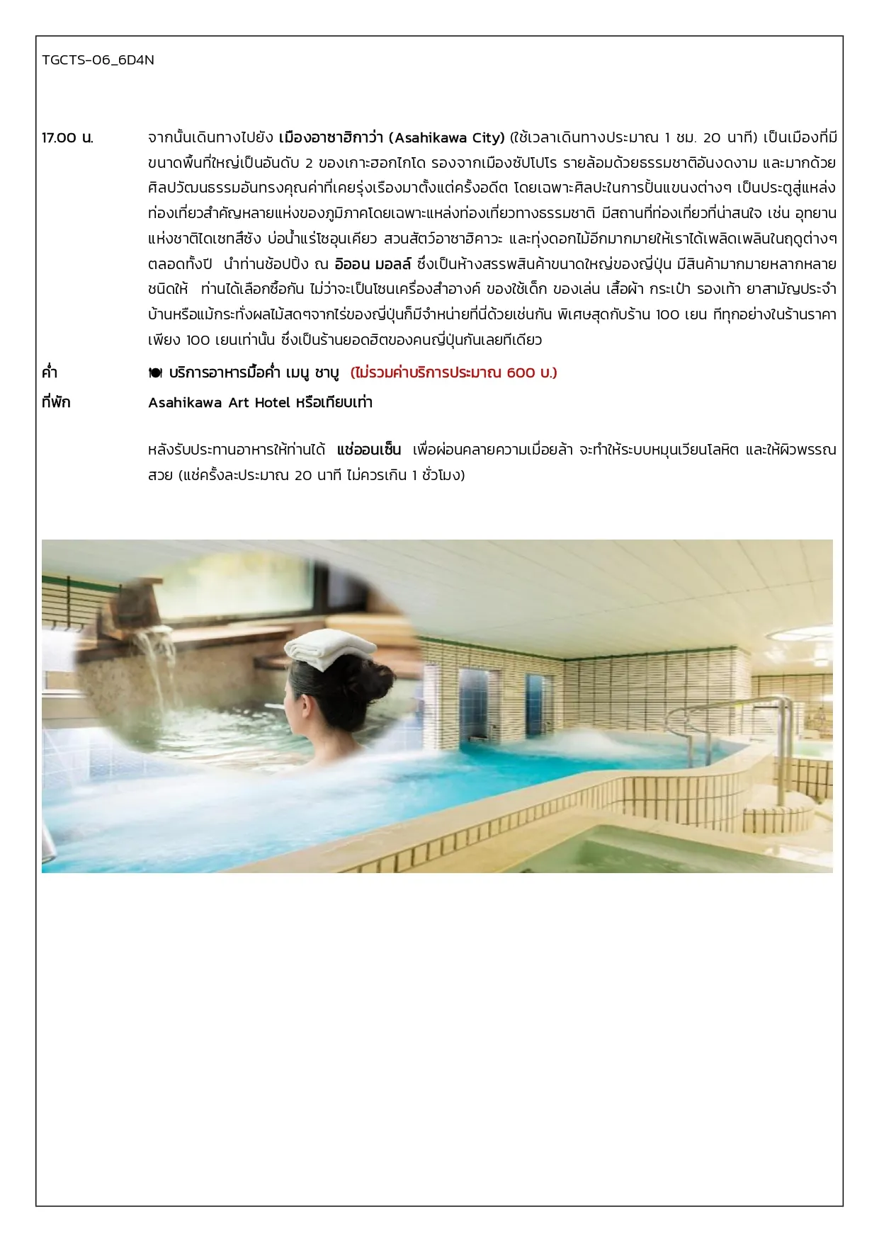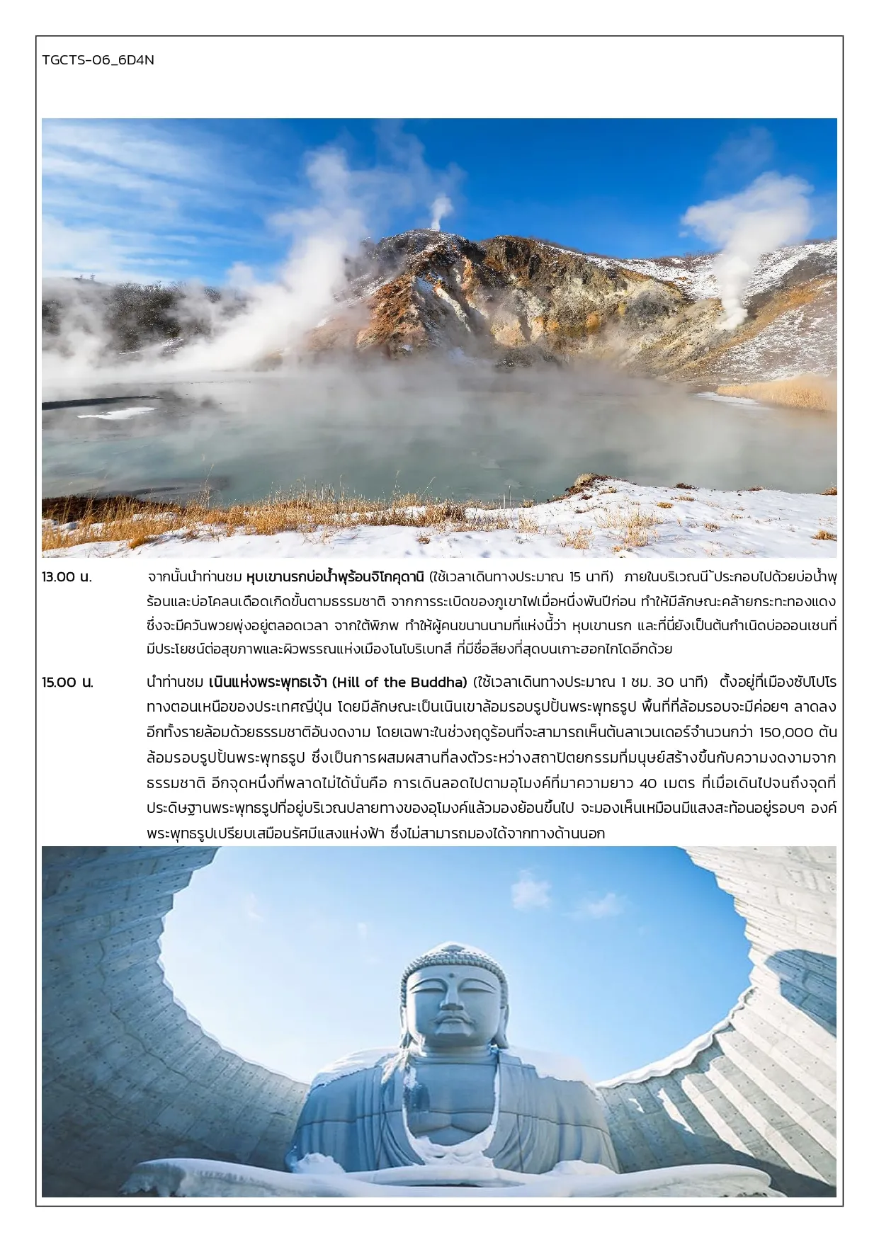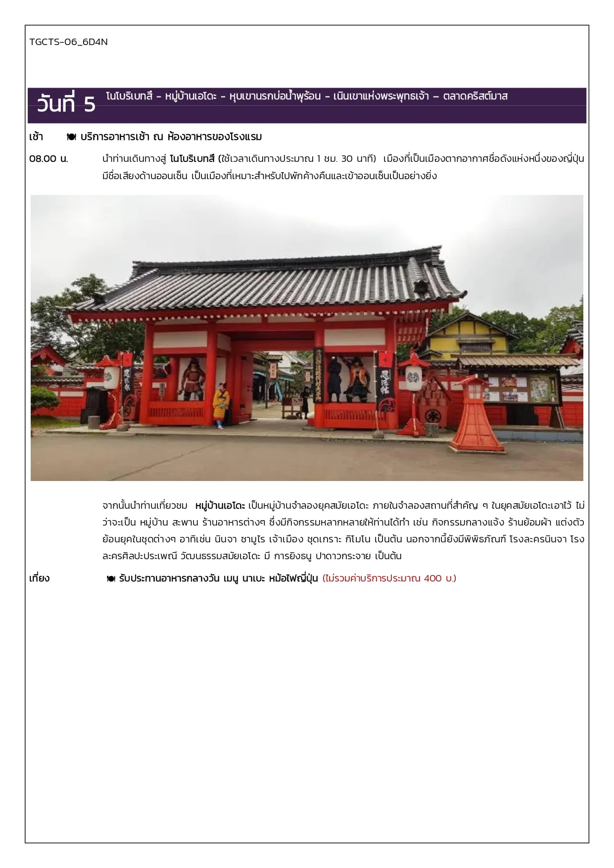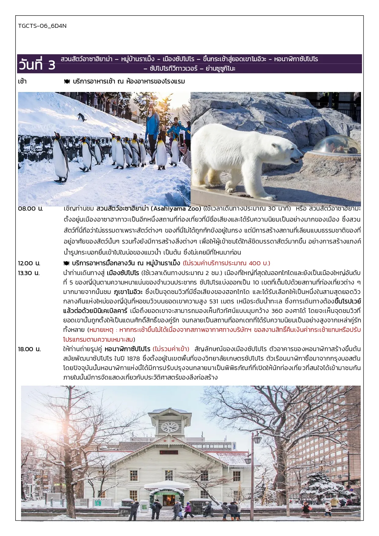 TGCTS-06 ฮอกไกโด ซัปโปโร อาซาฮิคาวะ ฟุราโนะ โอตารุ – 6D4N เดินทาง DEC-MAR