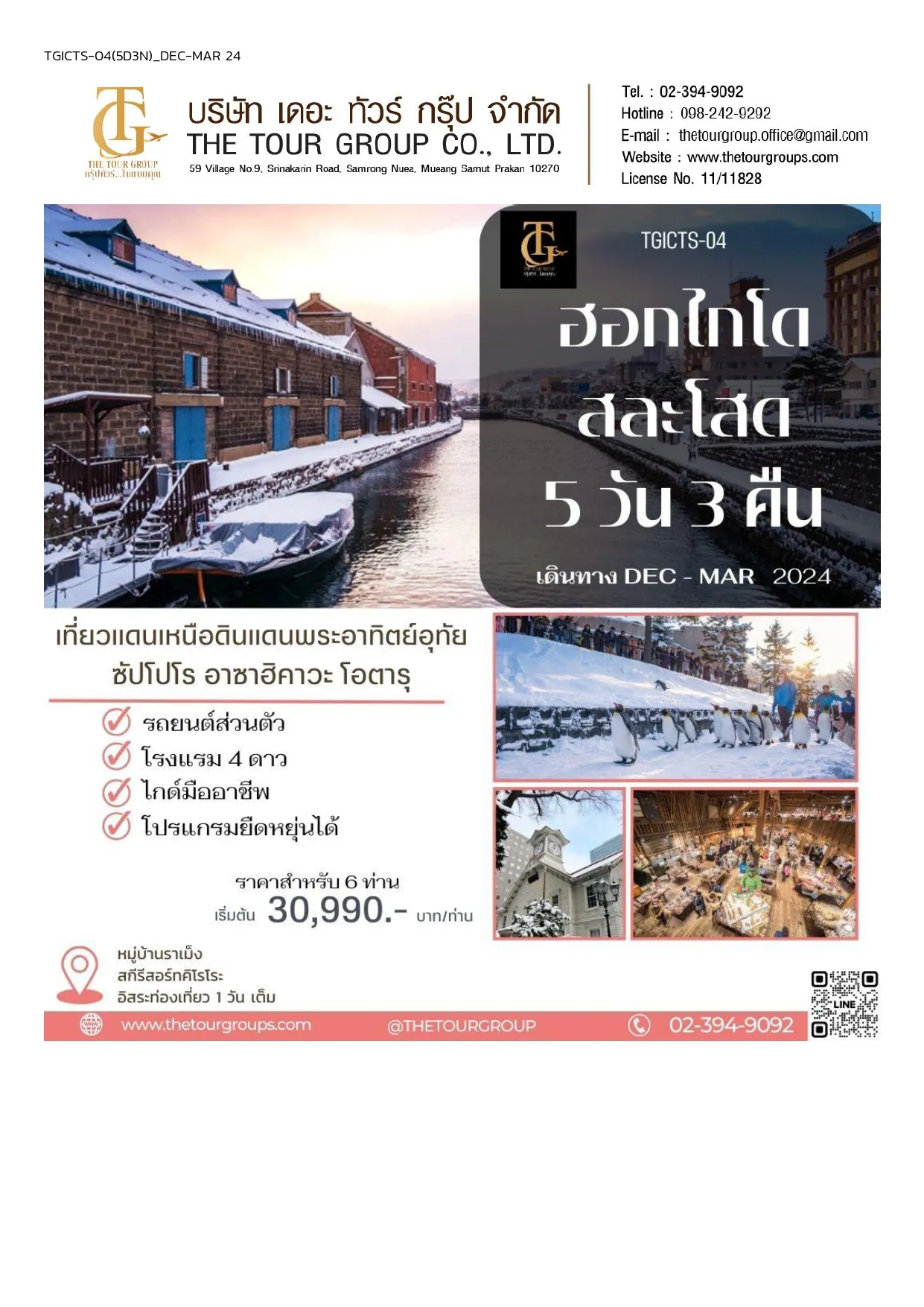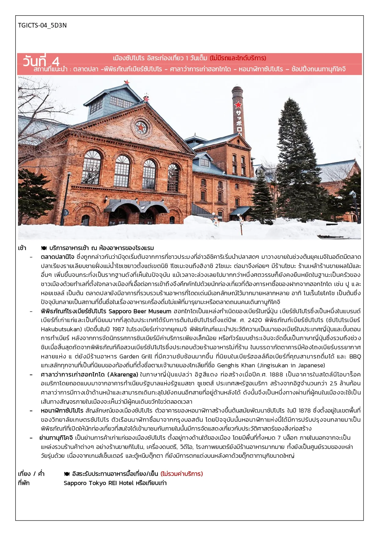 TGICTS – 04 ฮอกไกโด สละโสด 5D3N เดินทาง DEC – MAR