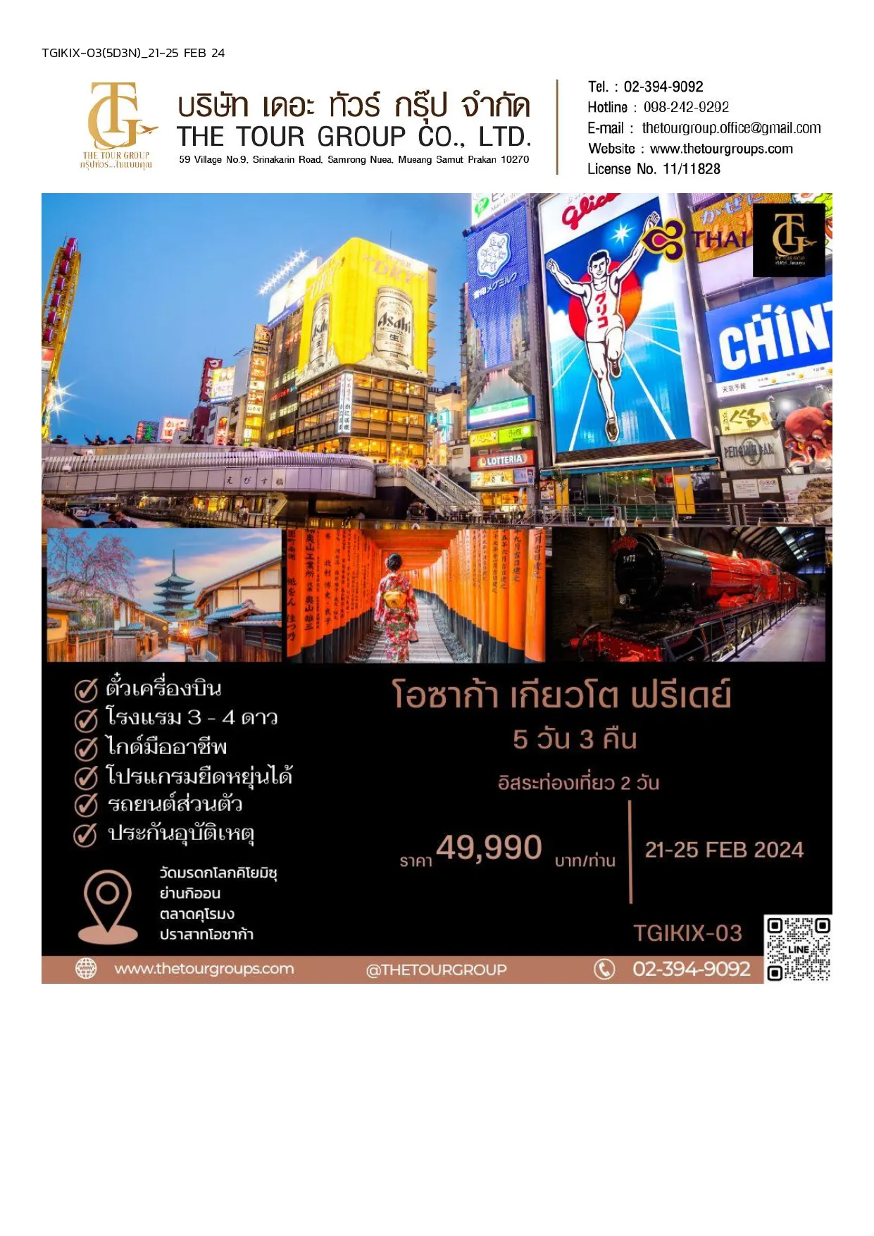 TGIKIX-03 โอซาก้า เกียวโต ฟรีเดย์ 5D3N 21-25 FEB 24