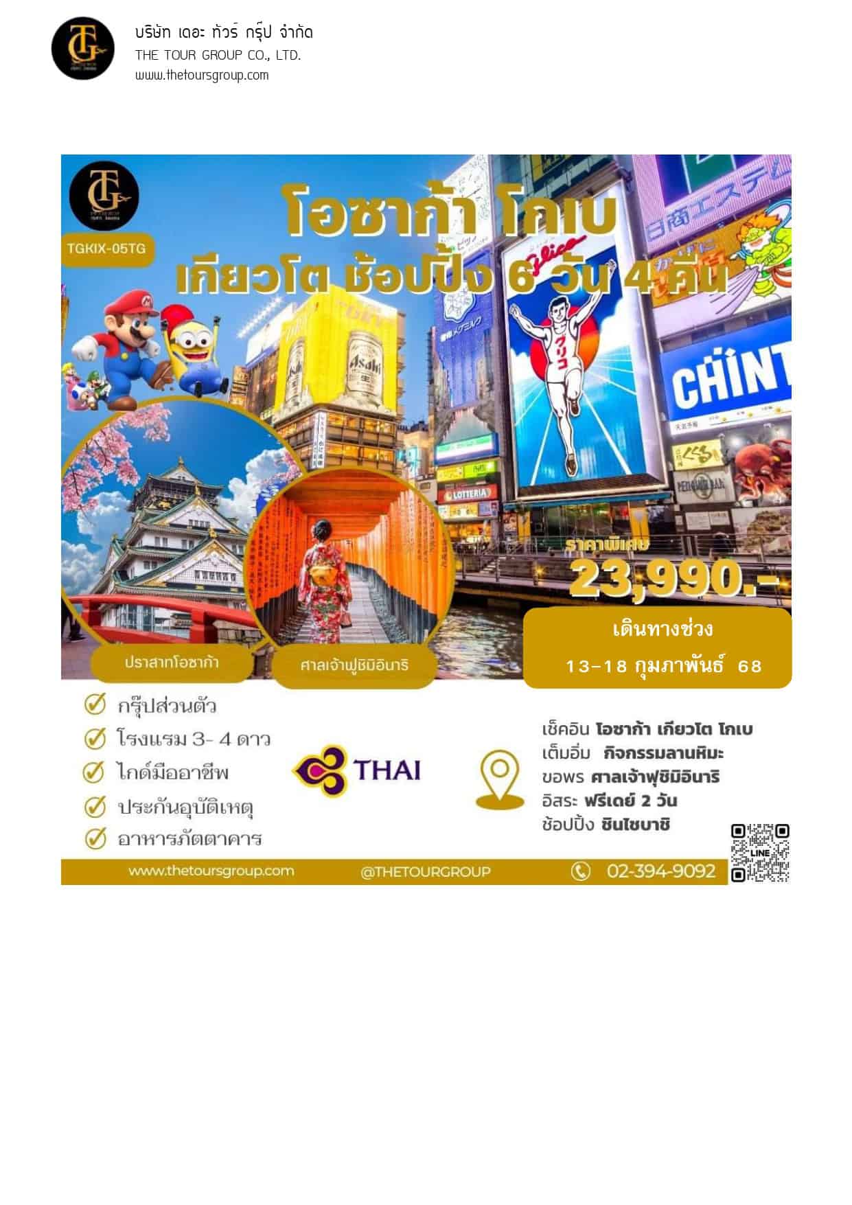 TGKIX-05TG โอซาก้า โกเบ เกียวโต ช้อปปิ้ง 6D 4N เดินทาง 13-18 FEB 25