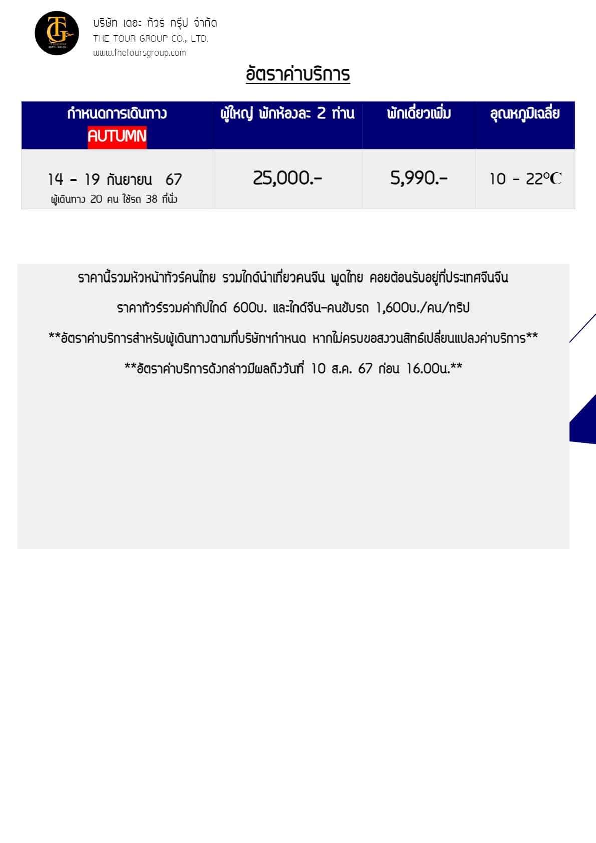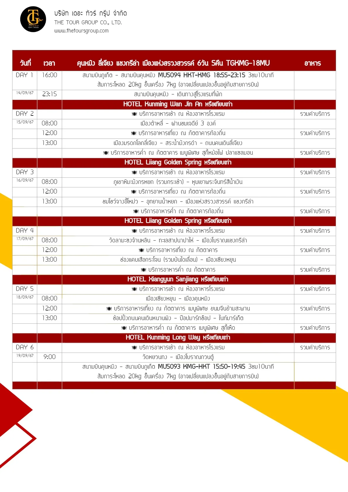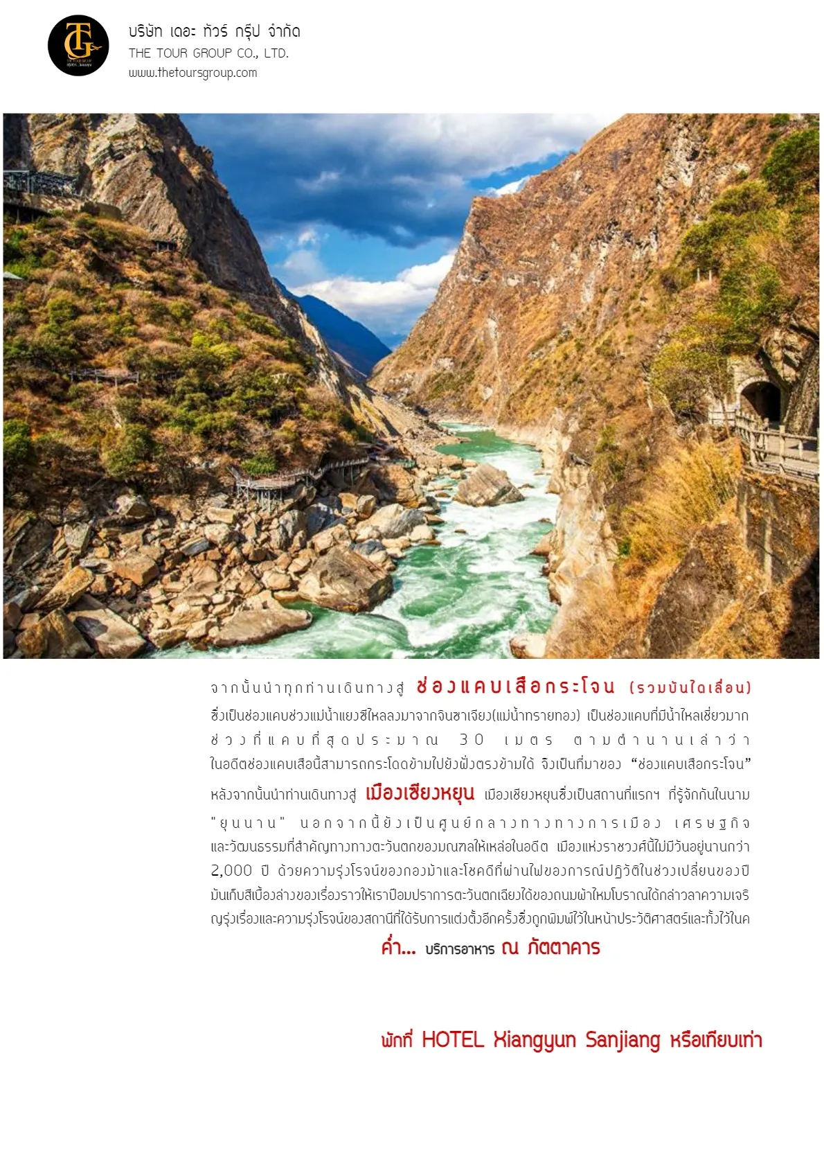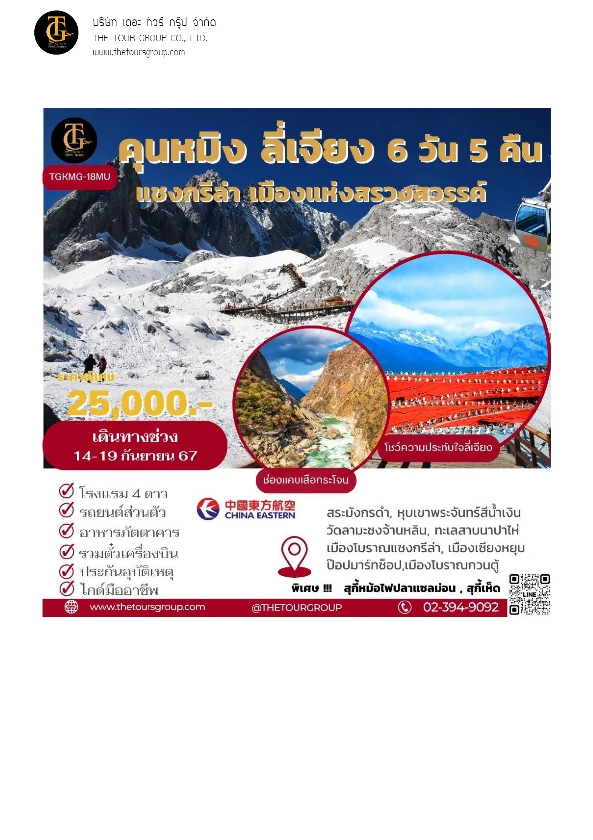 TGKMG-18MU คุนหมิง ลี่เจียง แชงกรีล่า 6D 5N 14-19 SEP 24