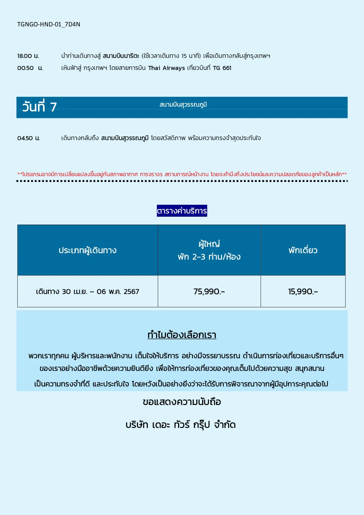 TGNGO-HND-01 7D4N เดินทาง 30 APR-06 MAY 24