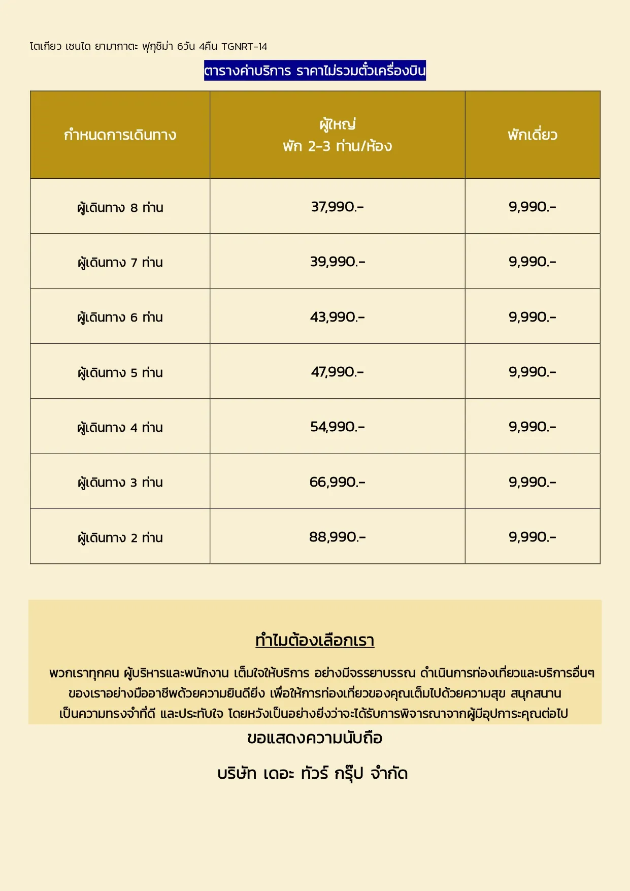 TGNRT-14 โตเกียว เซนได ยามากาตะ ฟุกุชิม่า – 6D4N