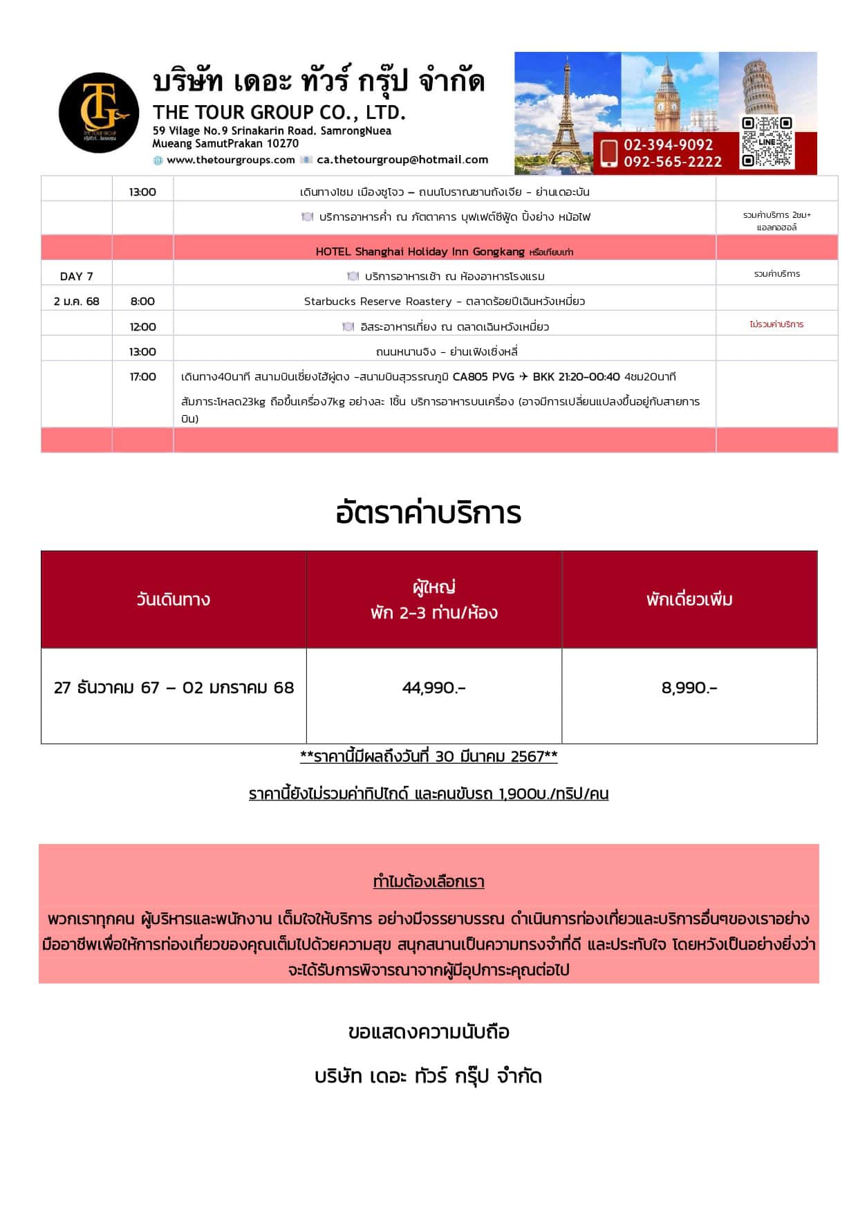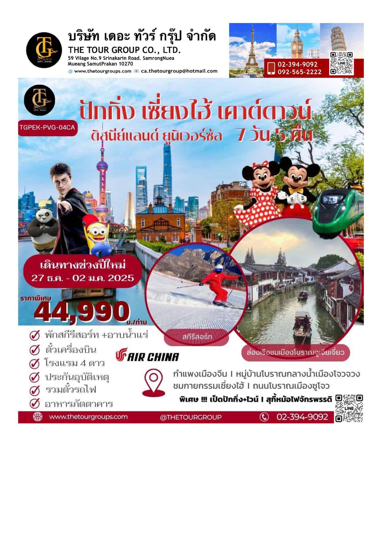 TGPEK-PVG-04CA ปักกิ่ง เซี่ยงไฮ้ เคาต์ดาวน์ ดิสนีย์แลนด์ ยูนิเวอร์ซํล 7D 5N เดินทาง 27 DEC – 02 JAN 25