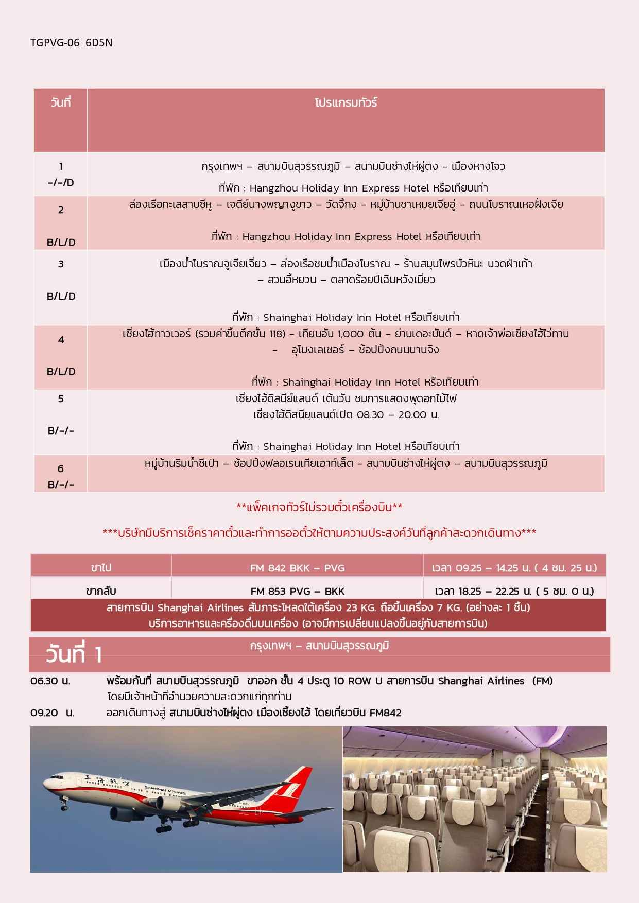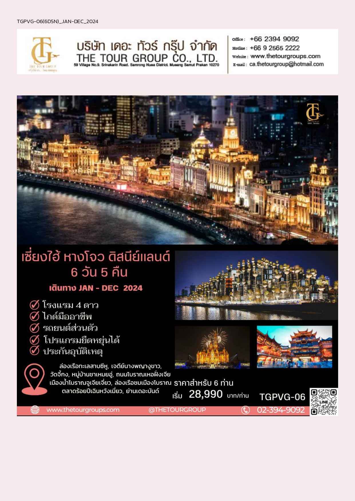 TGPVG-06 เซี่ยงไฮ้ หางโหว ดิสนีย์แลนด์ 6D5N เดินทาง JAN – DEC