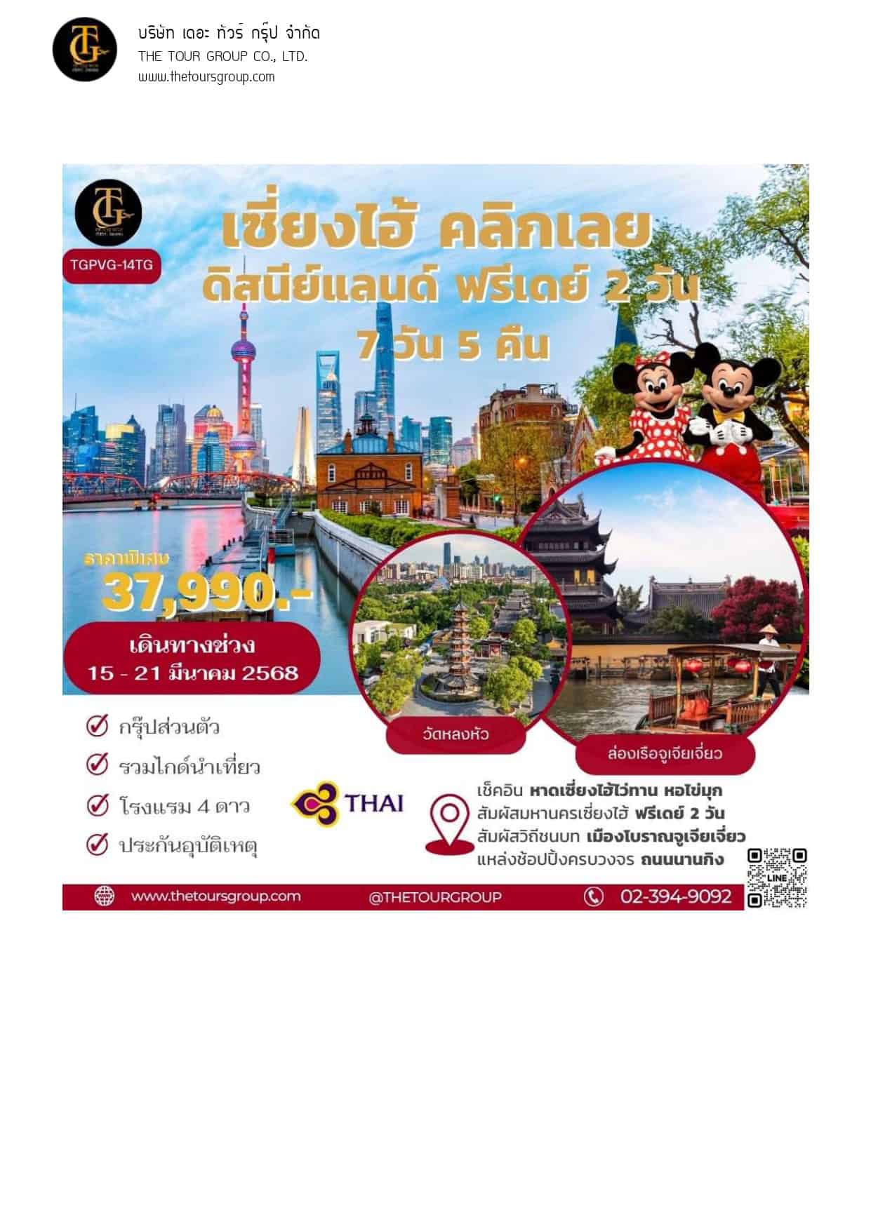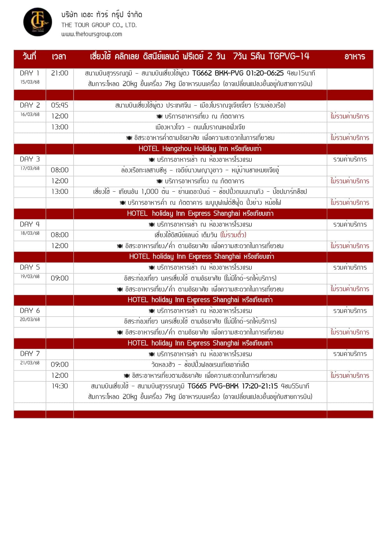 TGPVG-14TG เซี่ยงไฮ้ หางโจว ฟรีเดย์ 2 วัน 7D5N เดินทาง 15-21 MAR 25