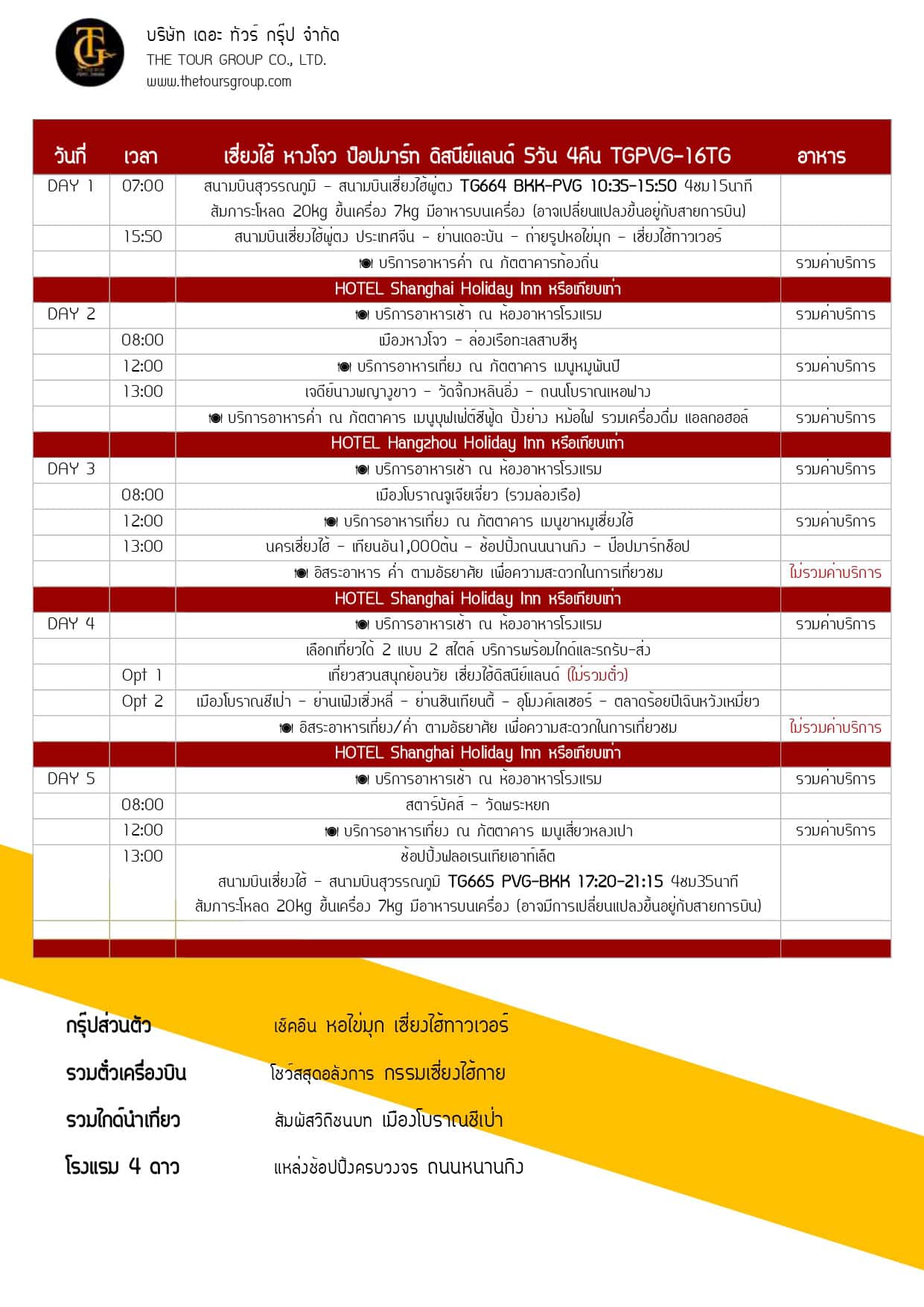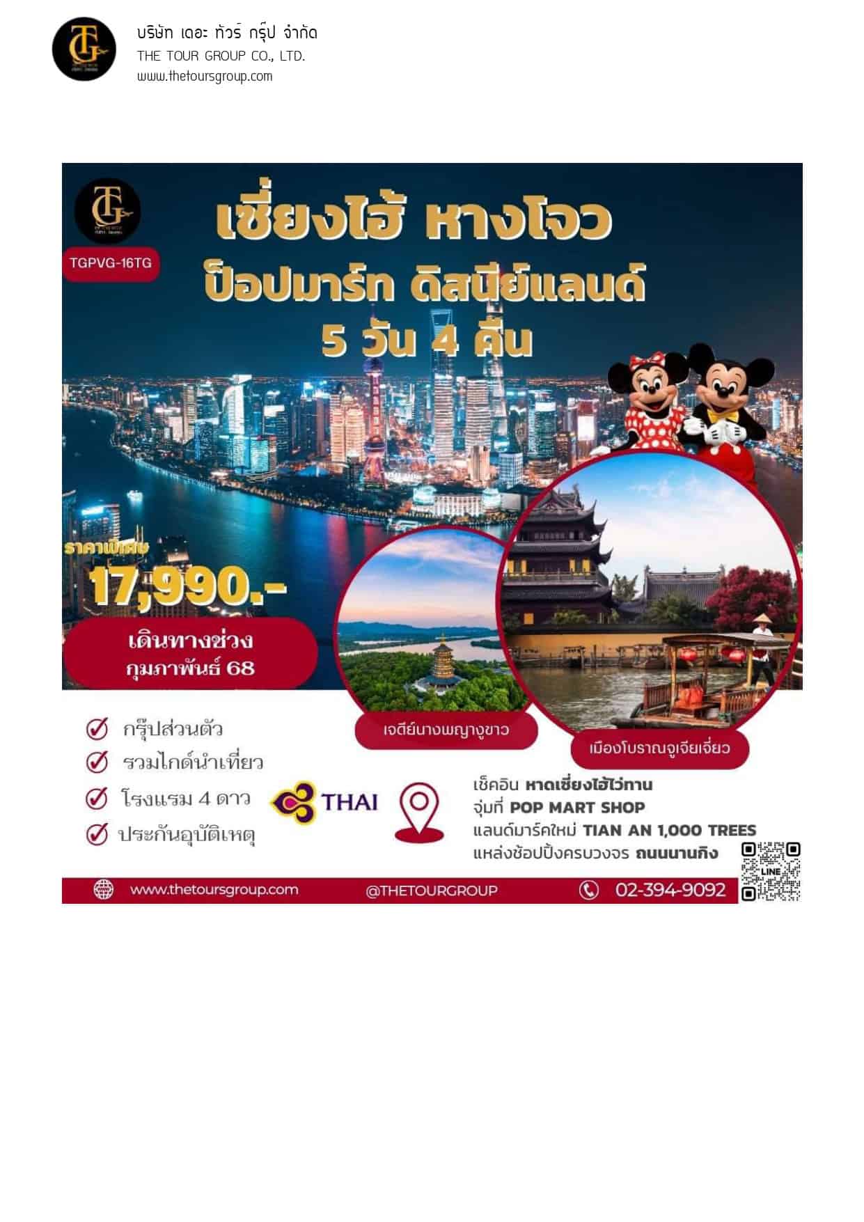 TGPVG-16TG เซี่ยงไฮ้ หางโจว ป็อปมาร์ท ดิสนีย์แลนด์ 5D 4N