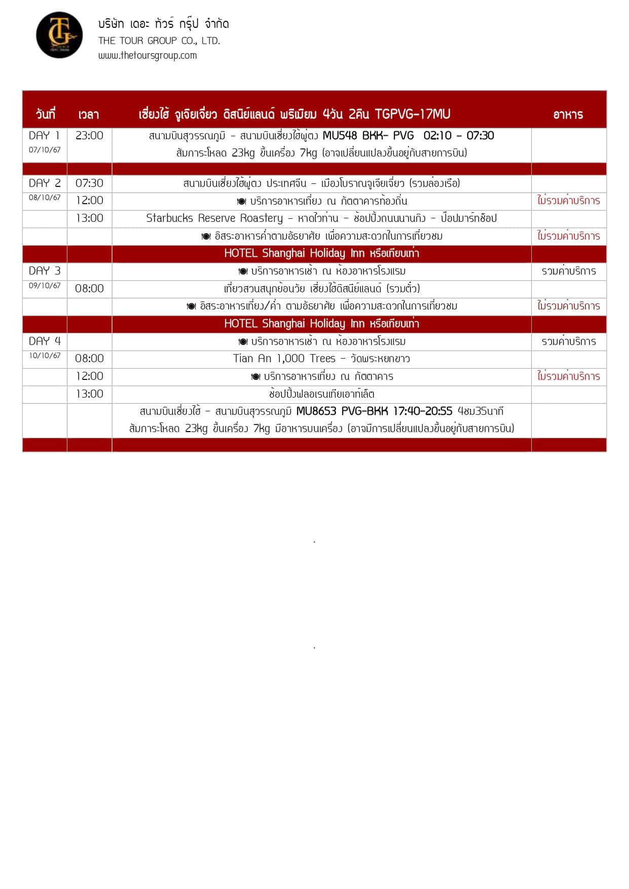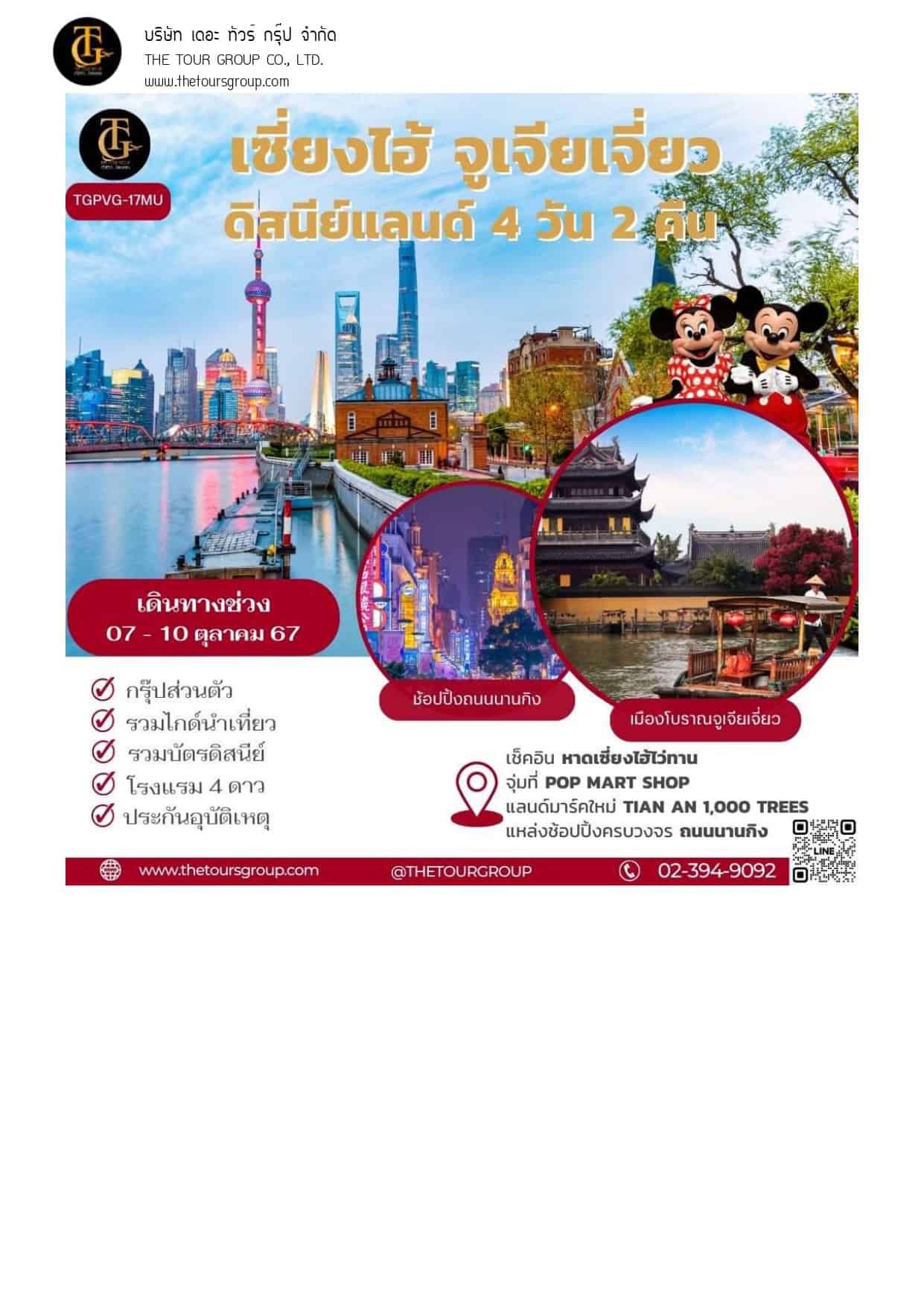TGPVG-17MU เซี่ยงไฮ้ จูเจียเจี่ยว ดิสนีย์แลนด์ พรีเมียม 4D 2N เดินทาง 7- 10 OCT 24