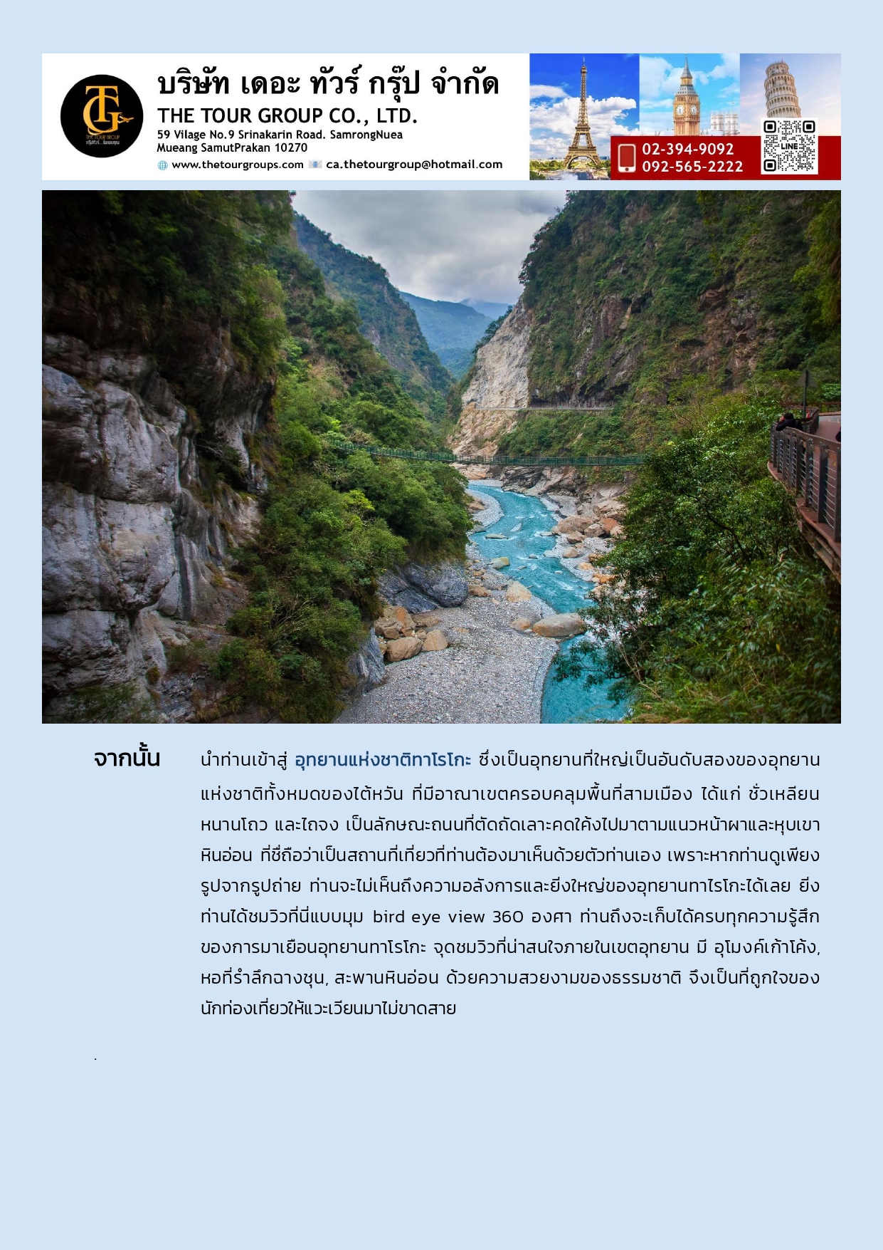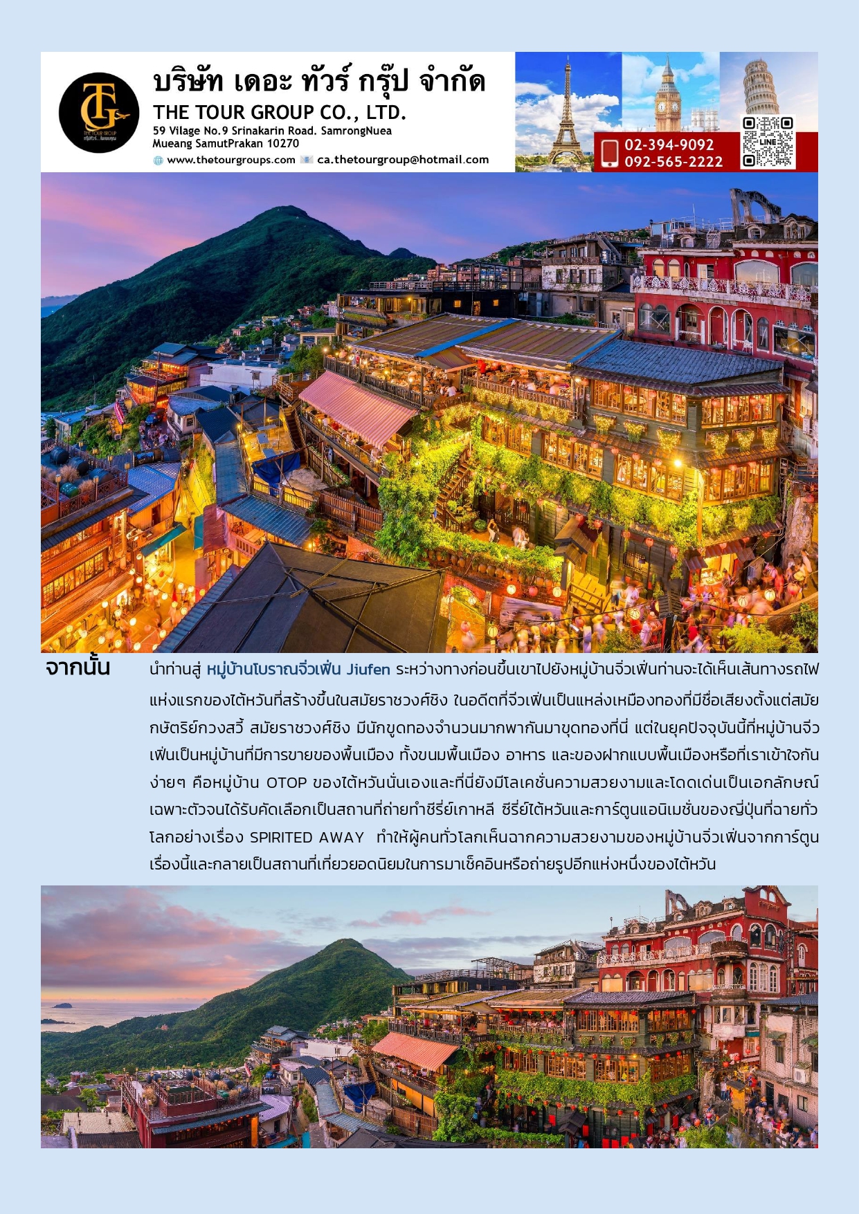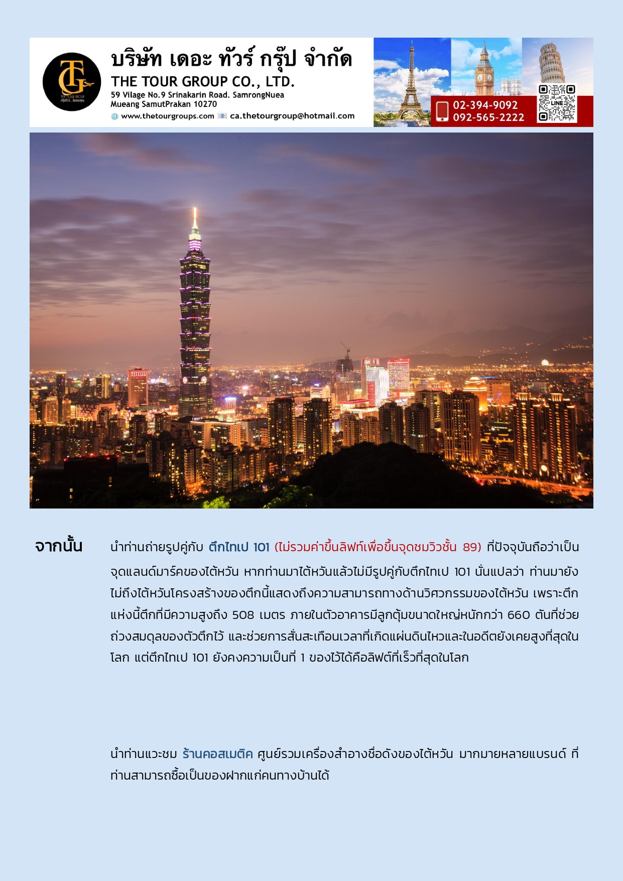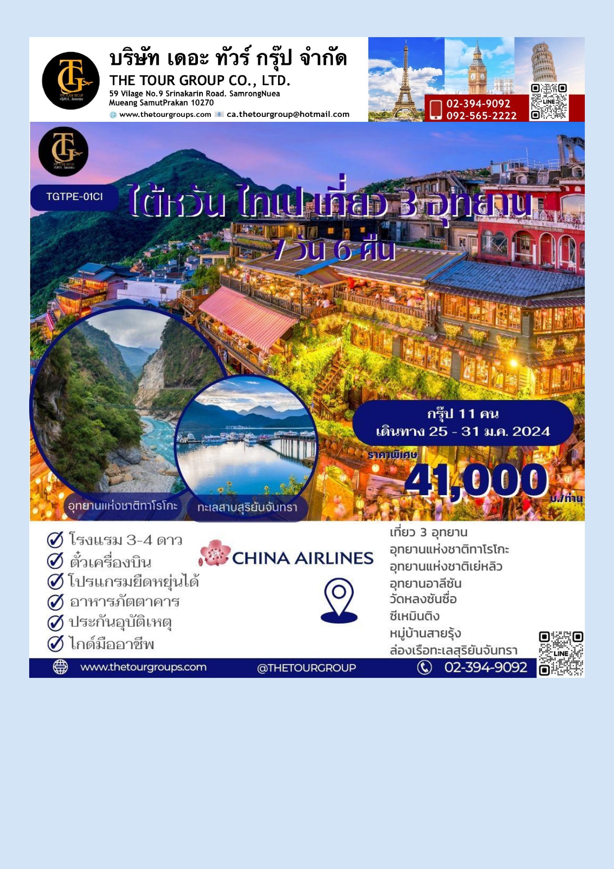 TGTPE-01CI ไต้หวัน ไทเป เที่ยว 3 อุทยาน 7วัน 6คืน วันที่ 25-31 ม.ค. 67
