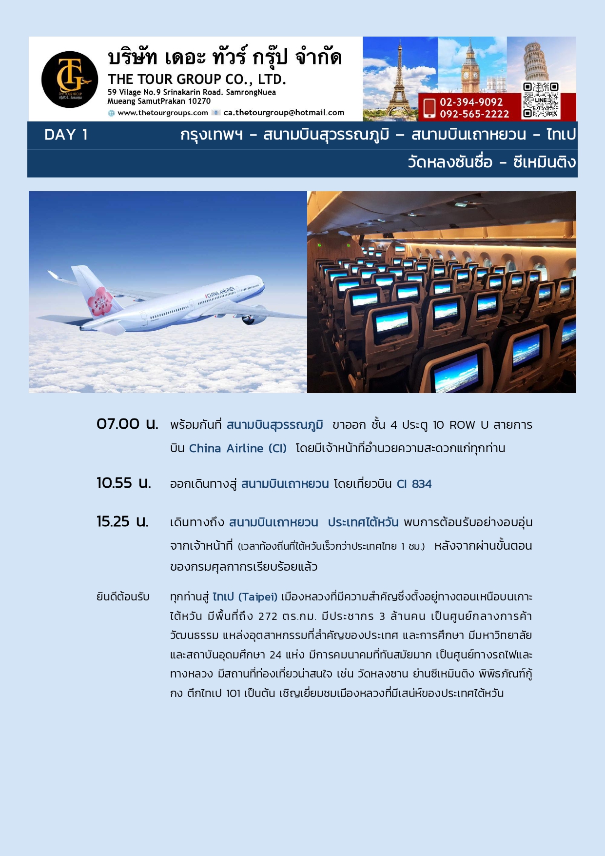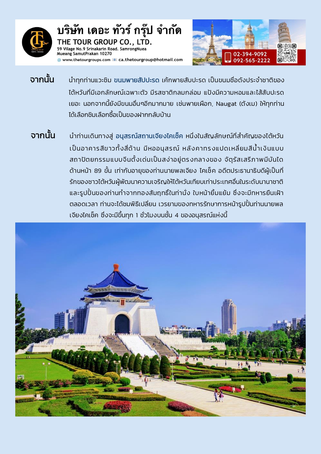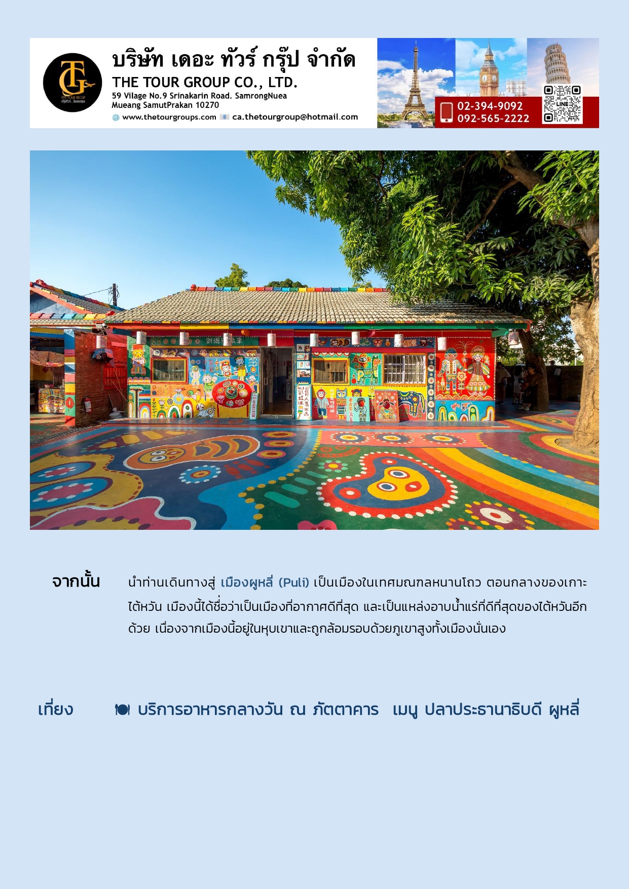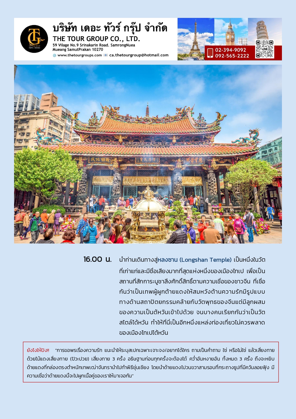 TGTPE-01CI ไต้หวัน ไทเป เที่ยว 3 อุทยาน 7วัน 6คืน วันที่ 25-31 ม.ค. 67
