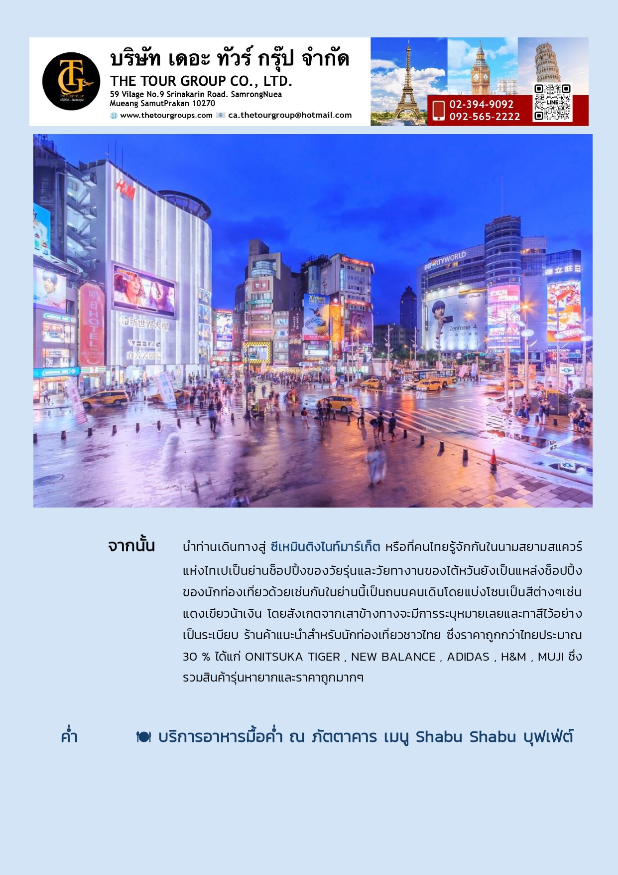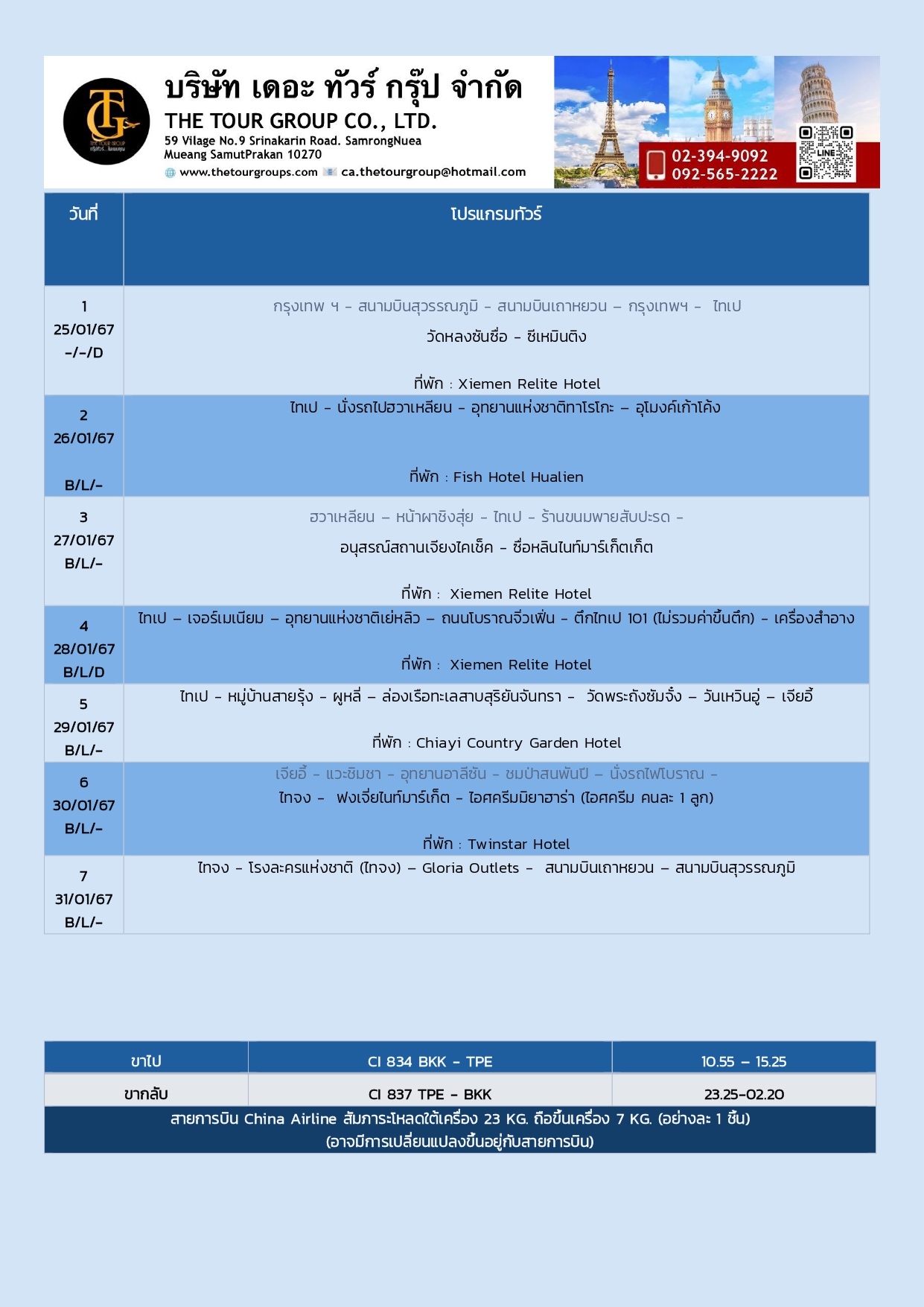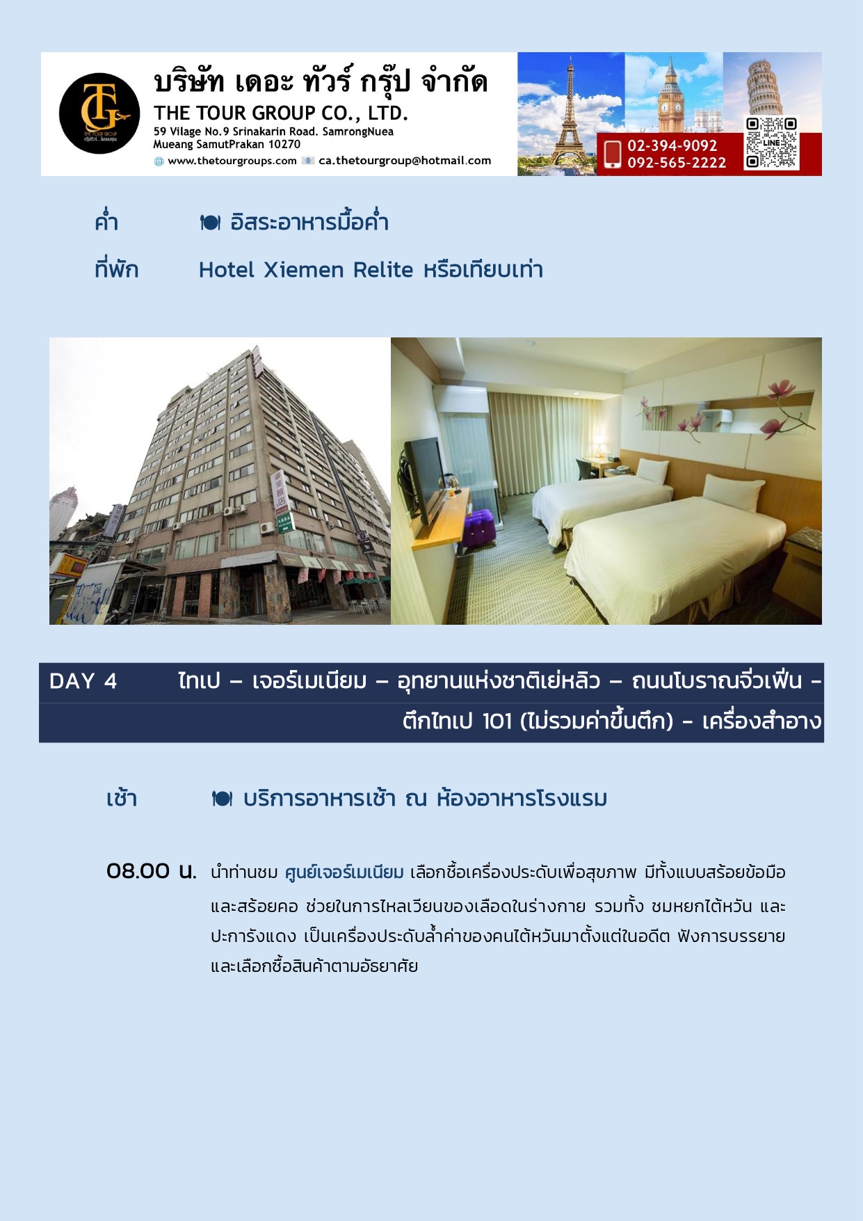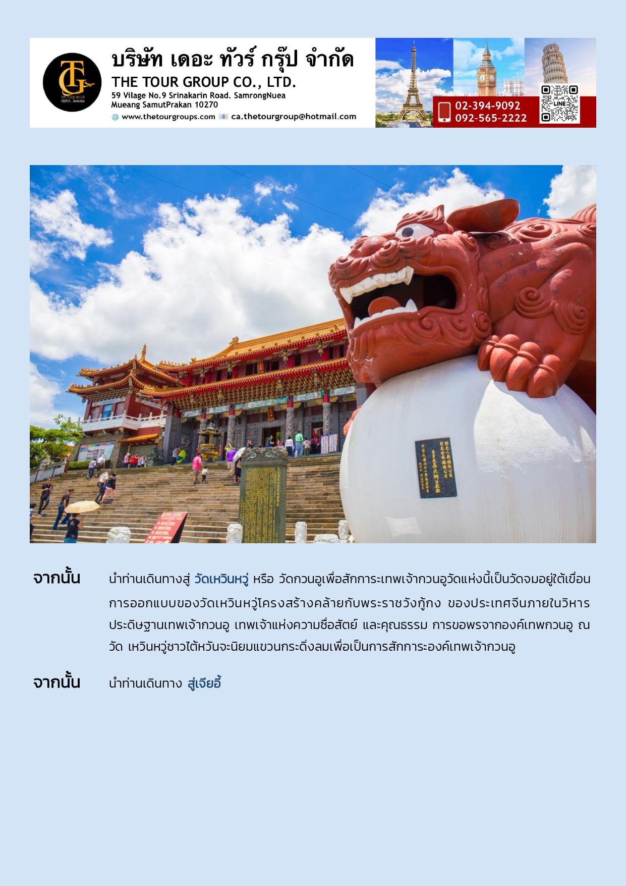 TGTPE-01CI ไต้หวัน ไทเป เที่ยว 3 อุทยาน 7วัน 6คืน วันที่ 25-31 ม.ค. 67