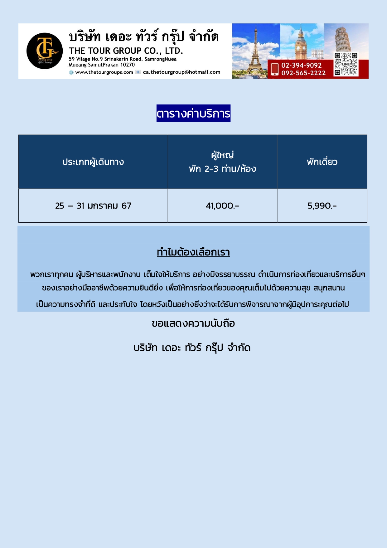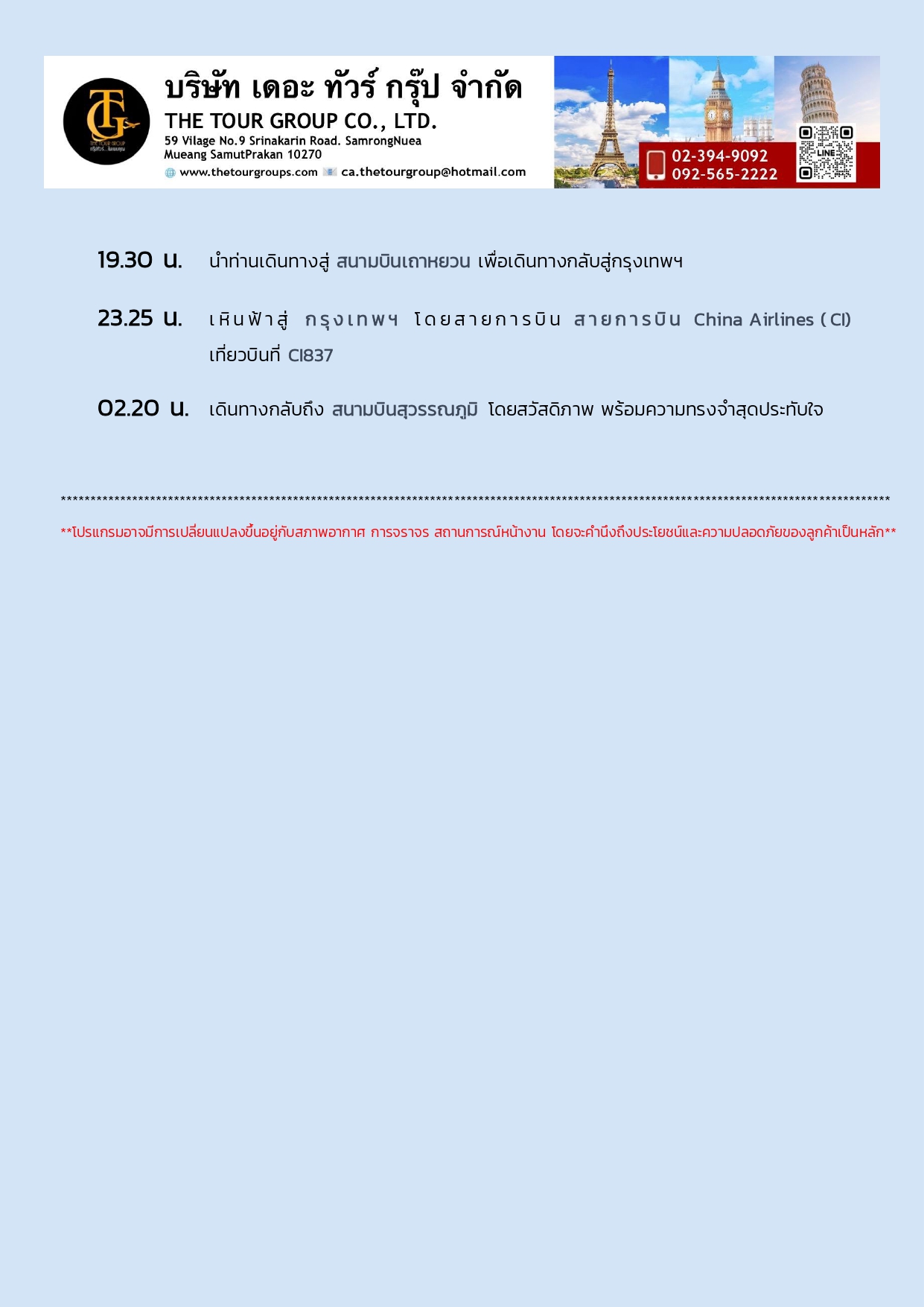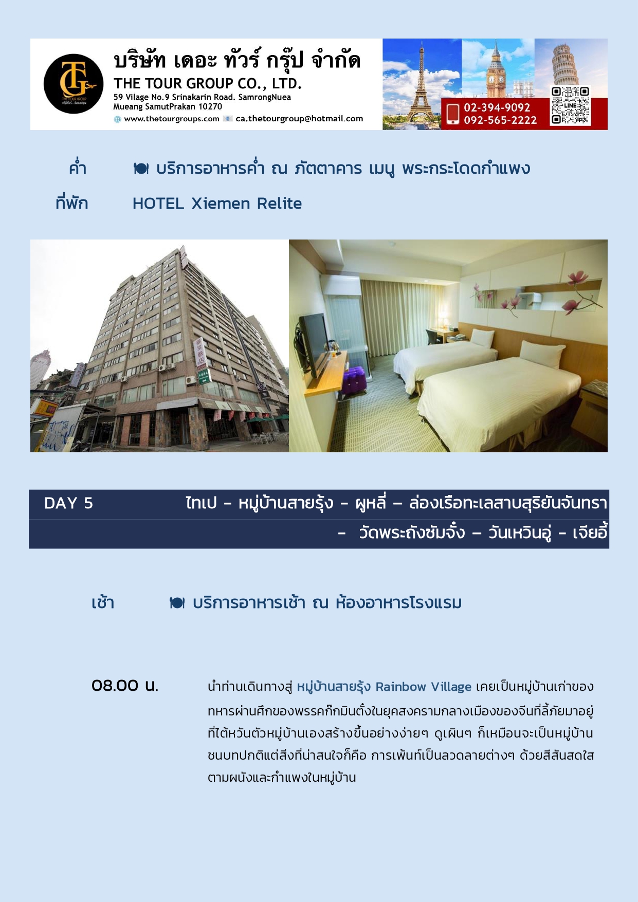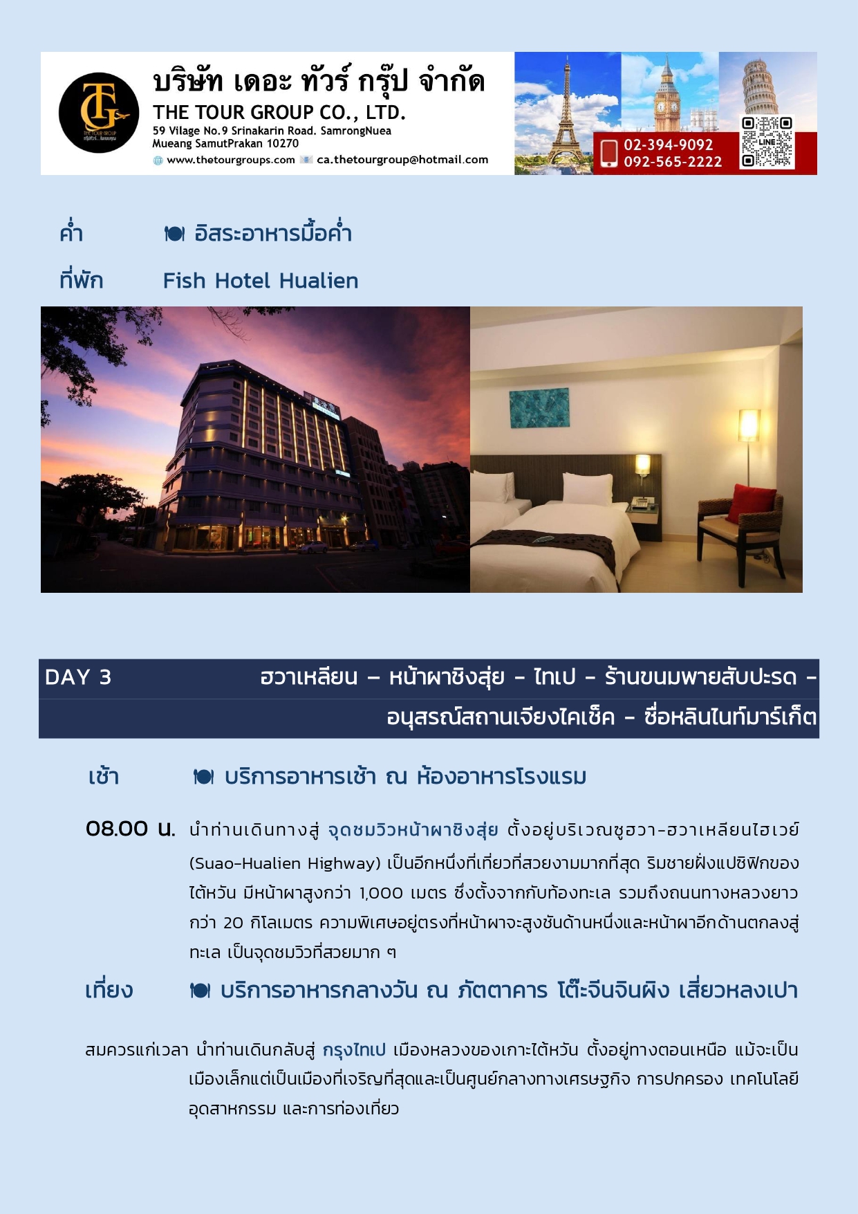 TGTPE-01CI ไต้หวัน ไทเป เที่ยว 3 อุทยาน 7วัน 6คืน วันที่ 25-31 ม.ค. 67
