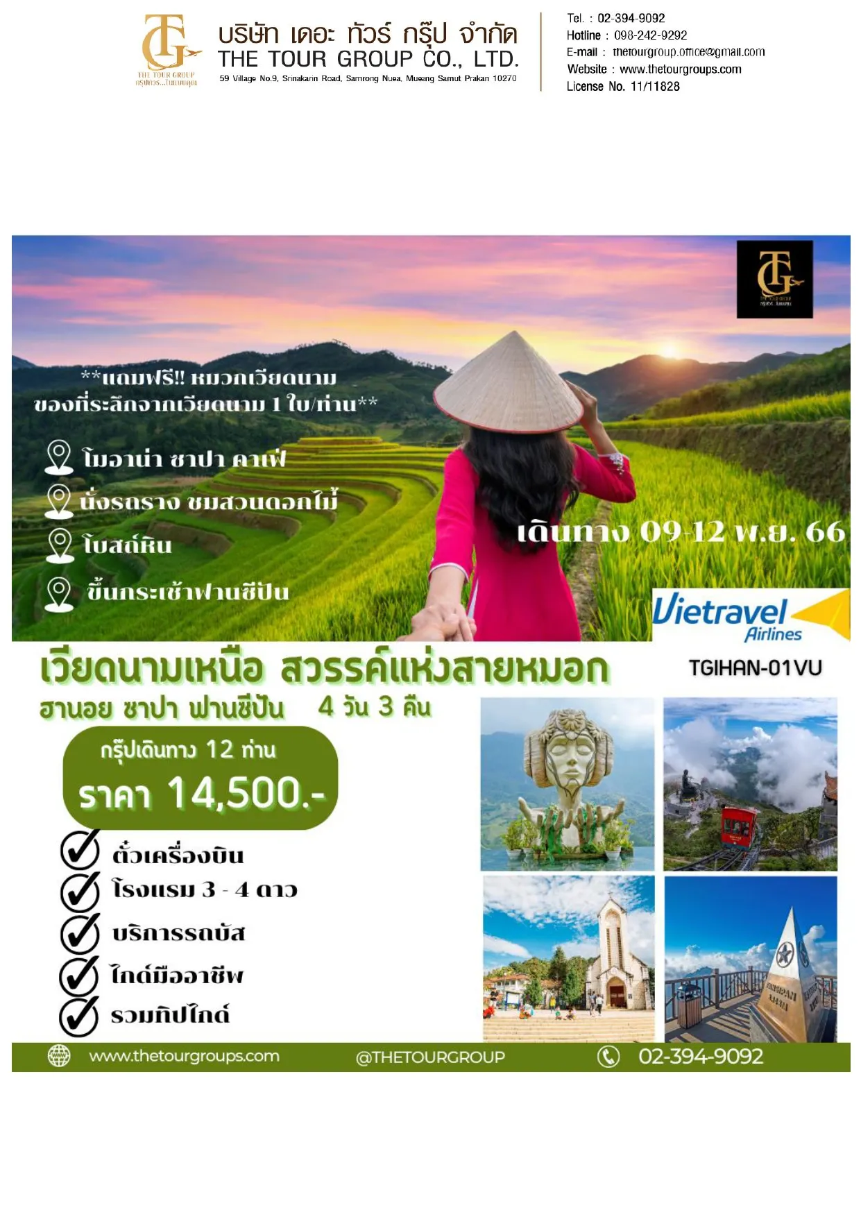 TGVH-VU01 เวียดนามเหนือ สวรรค์แห่งสายหมอก 4D3N เดินทาง 09-12 NOV 24