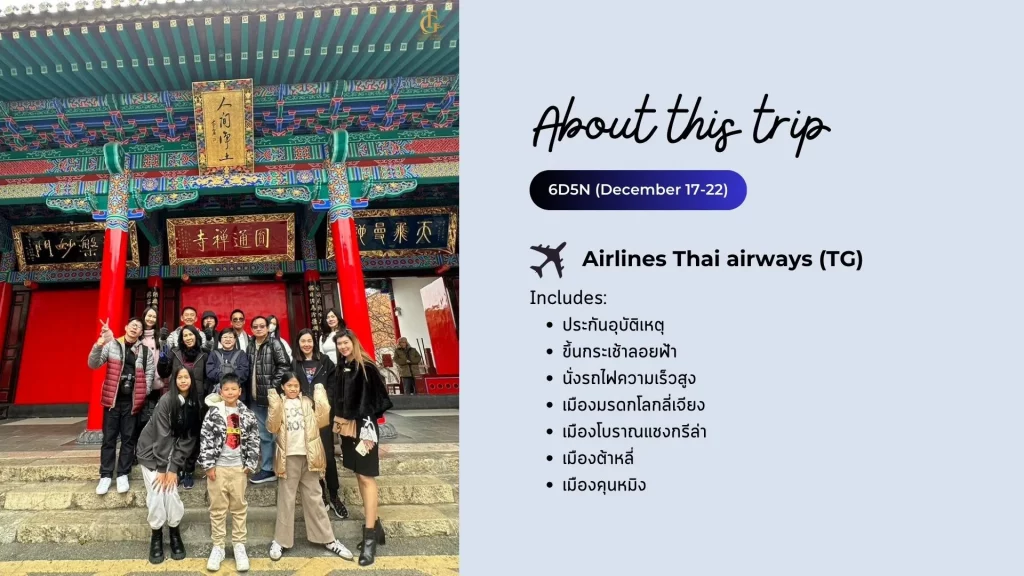 THE TOUR GROUPคุนหมิง ต้าหลี่ ลี่เจียงแชงกรีล่า นั่งรถไฟความเร็วสูง17-22 DEC 2023จำนวน 17 ท่าน